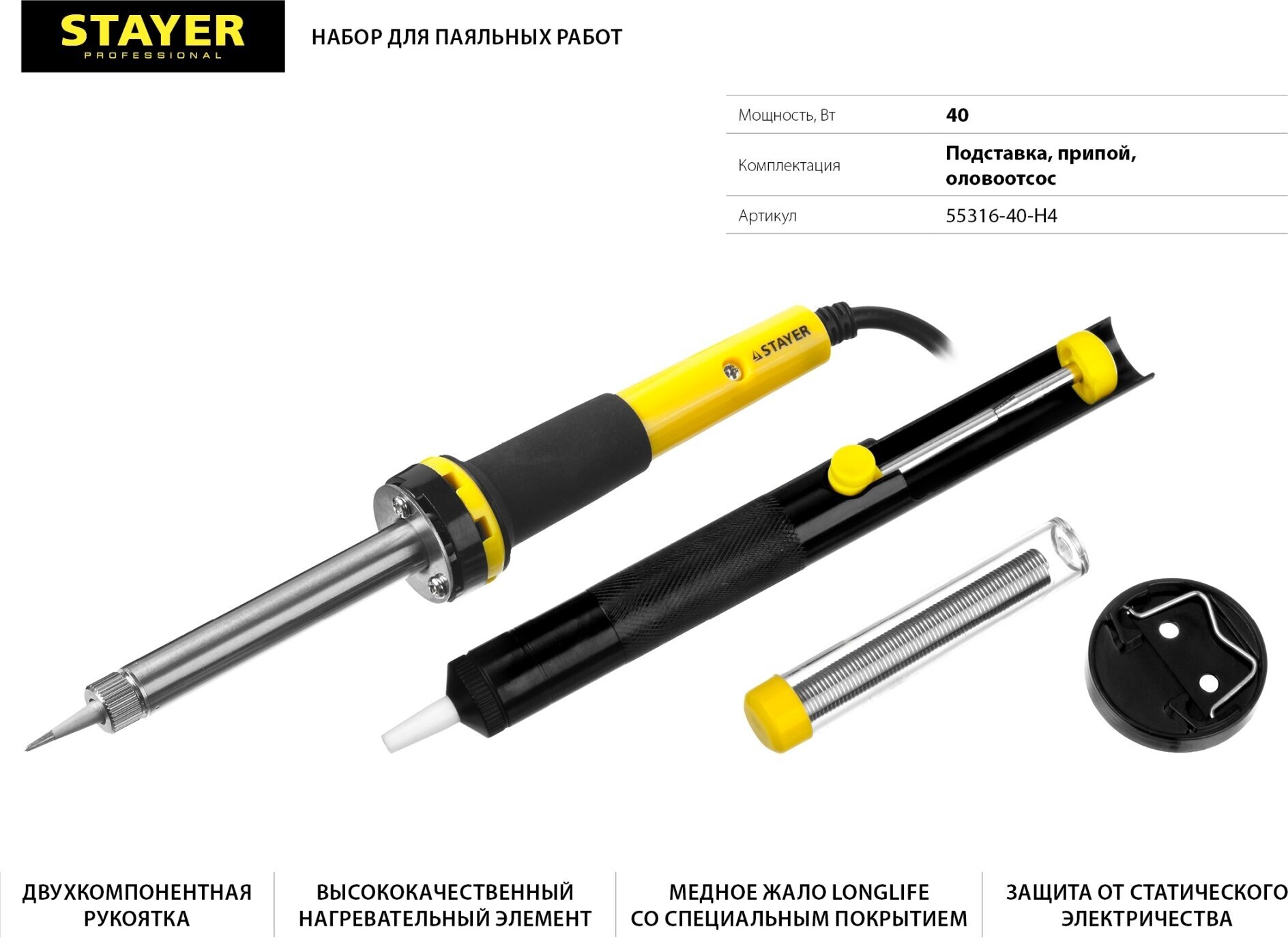 Паяльное оборудование STAYER изготовлено из высоко качественных материалов. Профессиональный подход и учет всех тенденций развития рынка обеспечивают высокую надежность и длительный срок службы оборудования.
