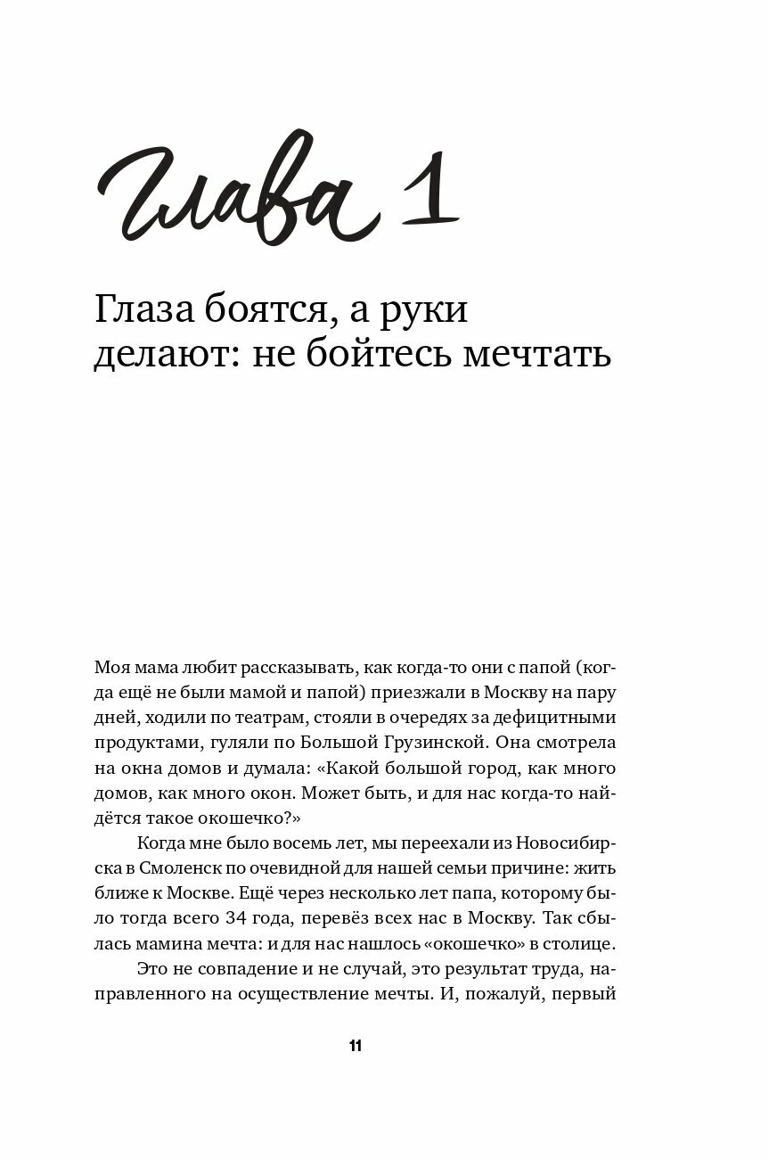 Купила книгу, принесла домой - и оттягивала момент начала чтения пару недель, потому что: 1. Понимала, что прочитаю быстро, а удовольствие хочется растягивать) 2. Осознавала, что захочу изменений после прочтения, поэтому готовилась морально) Очень понравилось оформление, эти акварельные леттеринги, закругленные уголки, задания для читателя - поэтому носила с собой бумажную книгу, несмотря на наличие электронной версии. Не знаю, какое впечатление книга произвела бы на меня, если бы я не была знакома с Ольгой онлайн. После «Как мечтать, чтобы сбывалось» осталось приятное послевкусие, как после освежающего напитка - и несколько идей, которые я обязательно использую.