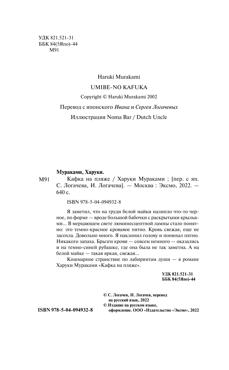 Книга: Кафка на пляже (Мураками Харуки , Логачев Сергей И. (переводчик), Логачев Иван С. (переводчик)); Эксмо, 2022