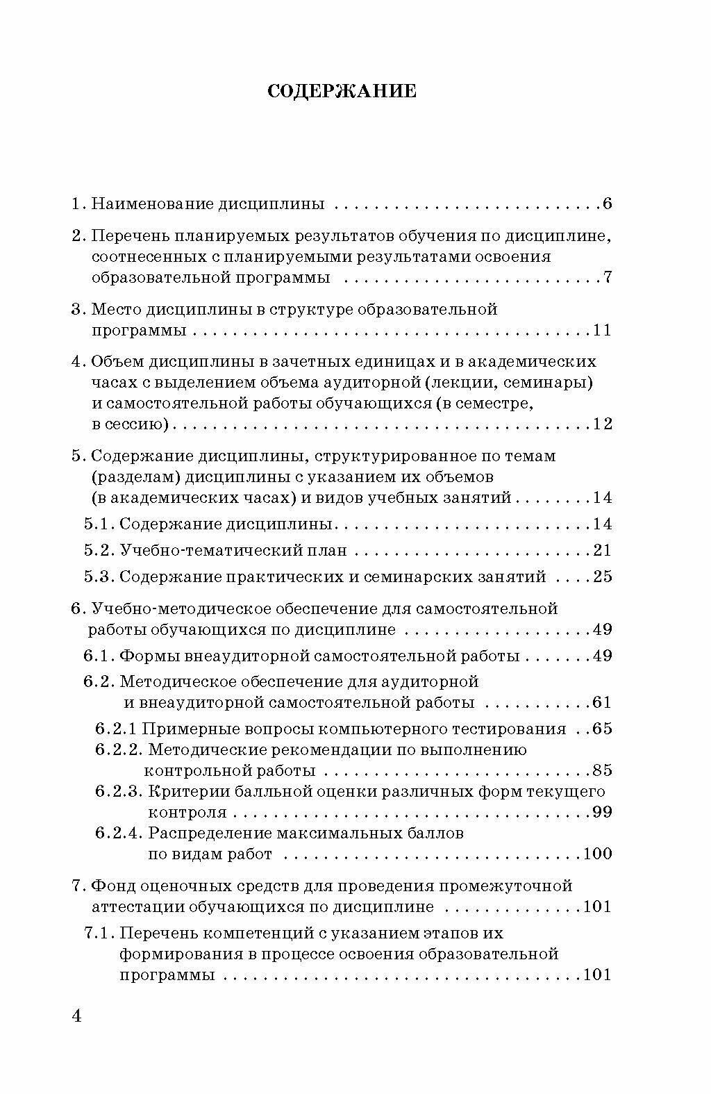 Рабочая программа учебной дисциплины содержит требования к результатам освоения дисциплины, программу, тематику практических и семинарских занятий и их проведения, формы самостоятельной работы, контрольные вопросы и систему оценивания, учебно-методическое обеспечение дисциплины.