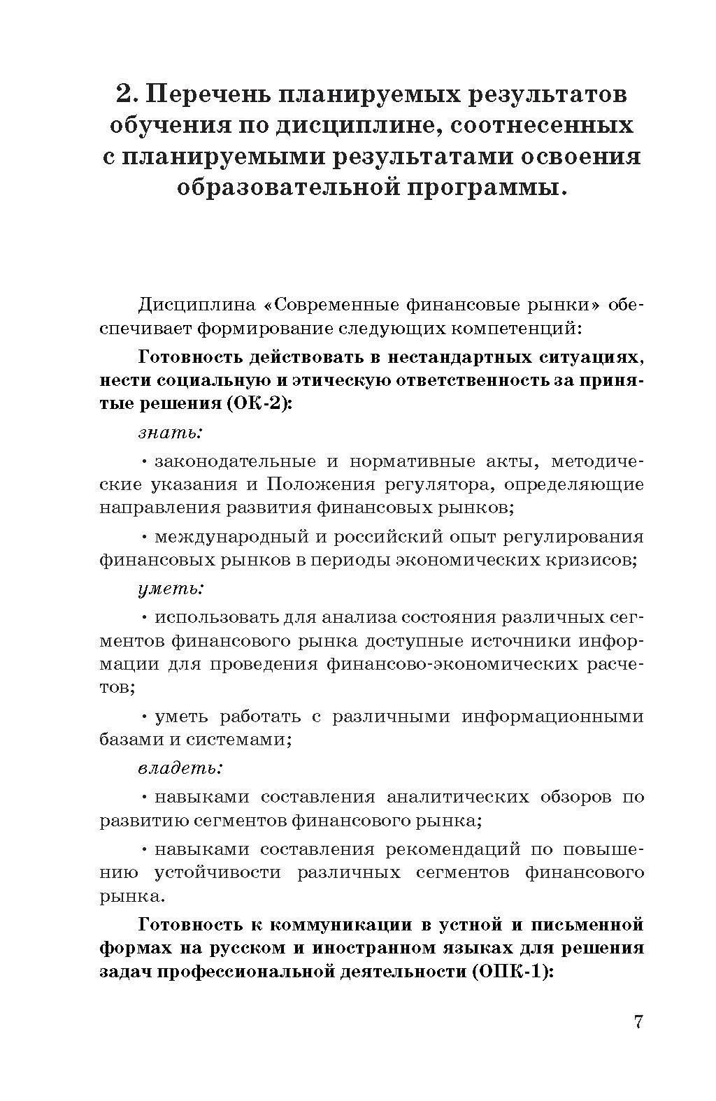 Рабочая программа учебной дисциплины "Современные финансовые рынки" является базовой дисциплиной модуля общепрофессиональных дисциплин направления подготовки "Финансы и кредит" (магистратура) для студентов Кредитно-экономического и Финансово-экономического факультета.