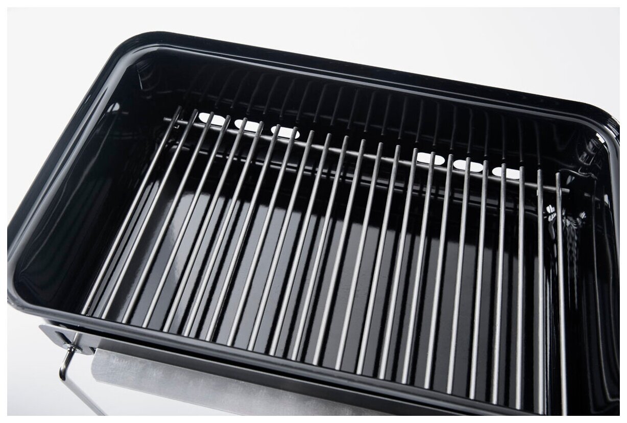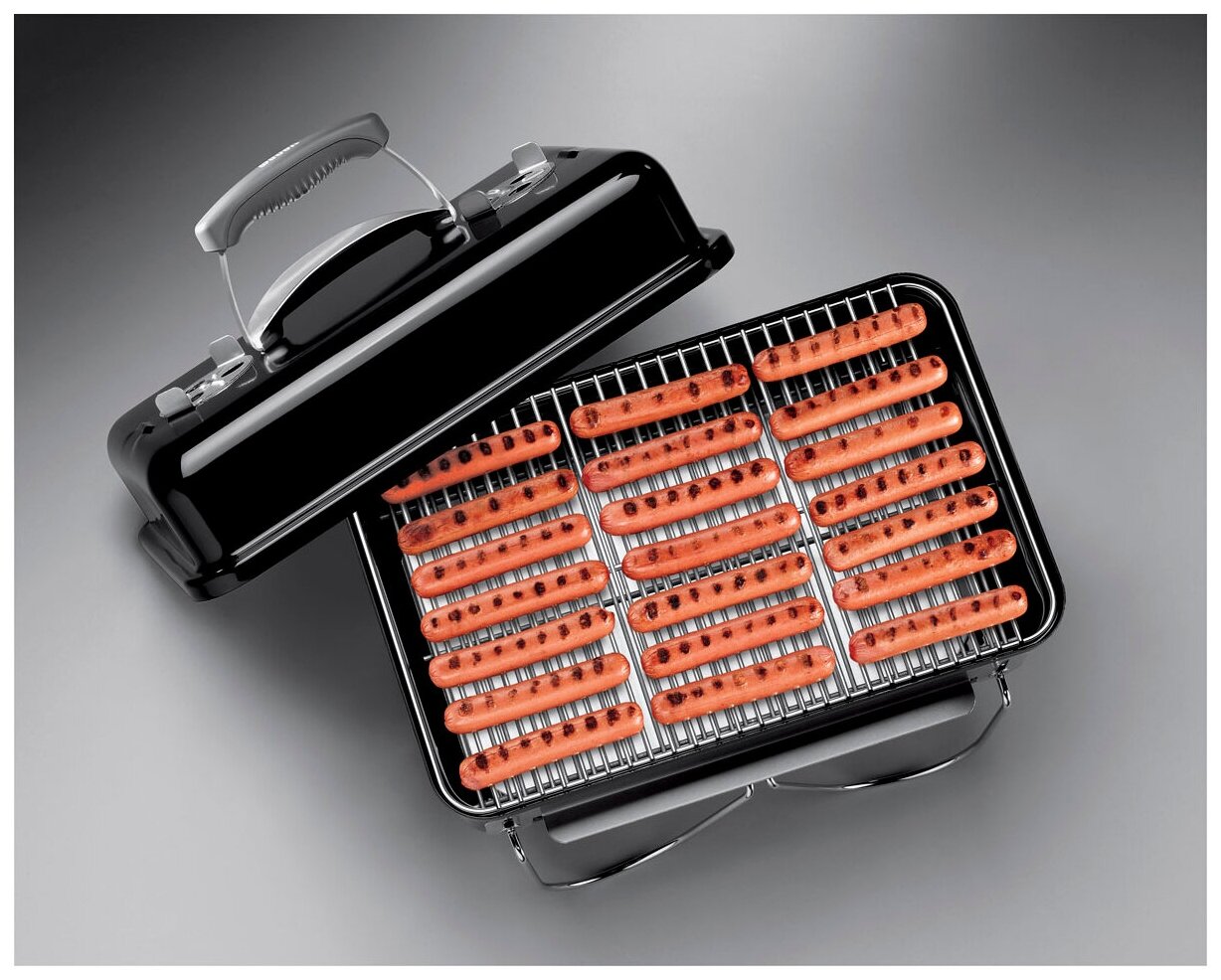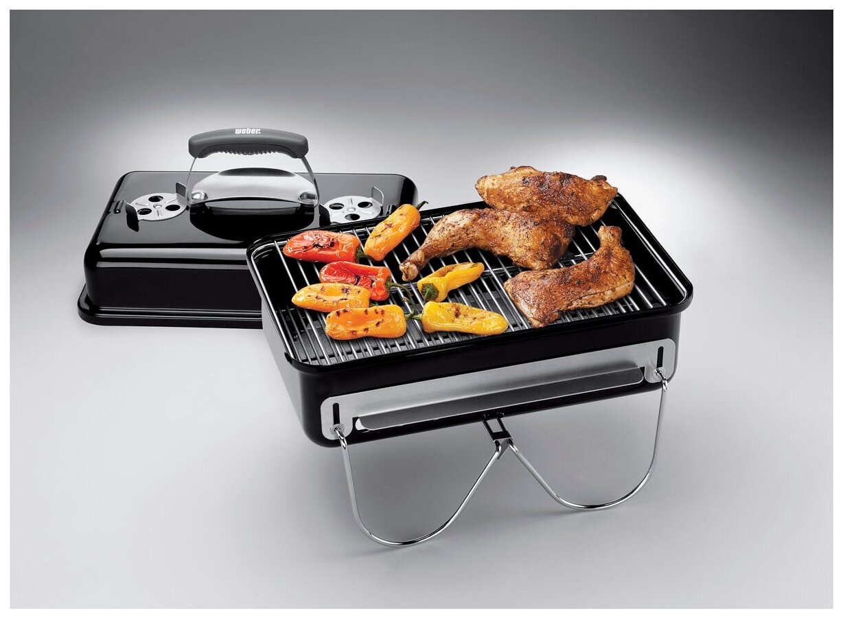 Конструкция гриля Weber Go-Anywhere оптимальна для использования на свежем воздухе. Гриль удобно складывается, при этом его ножки надежно фиксируют верхнюю часть, не давая устройству раскрыться во время перевозки в автомобиле. Еще одно преимущество модели Weber Go-Anywhere – универсальность. Ее можно использовать и как гриль, и в качестве мангала для шашлыков, и как коптильню для рыбы или других продуктов.