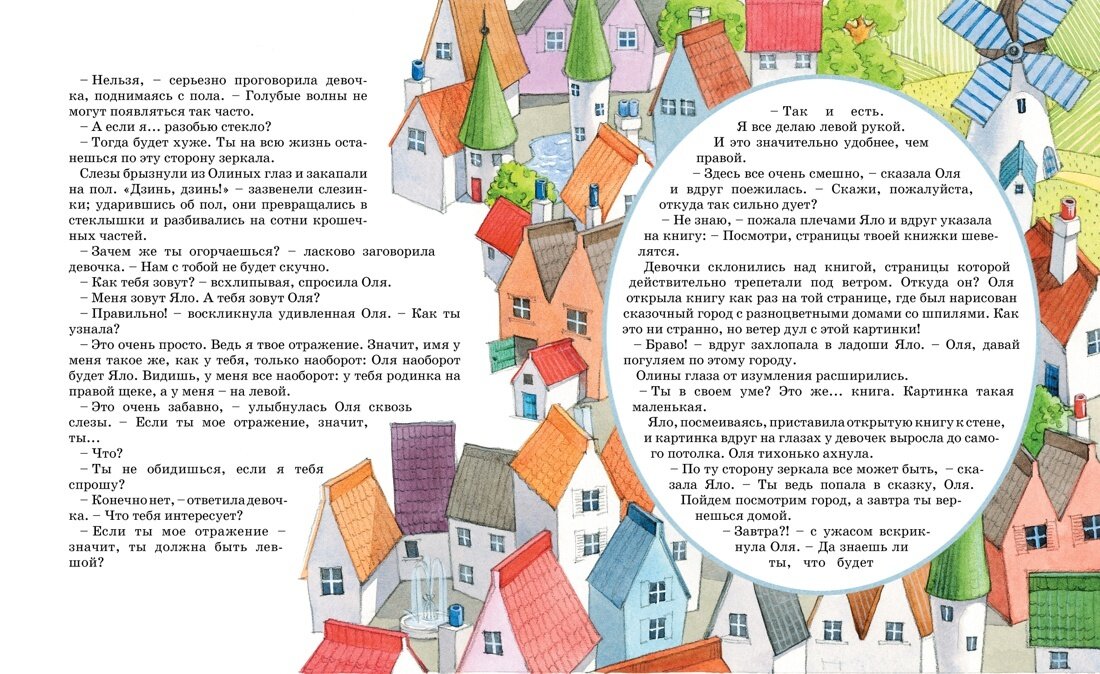 Решила познакомить ребенка в возрасте 5,5 лет с данной книгой перед просмотром одноименного советского фильма-сказки 1963 года. История, несомненно, правильная. После встречи Оли со своим отражением Яло, которая воплощает все ее недостатки (рассеянность, лень, чрезмерную любовь к сладкому, неаккуратность и боязливость), Оля становится более ответственной и требовательной к себе. Уметь замечать свои недостатки и искоренять их - главное, что должны усвоить дети. Однако, считаю лишним для детской сказки чрезмерную политизированность: "... Но, знайте, наши палачи, все ярче правда расцветает!" Поэтому мы пока отложили просмотр фильма на пару лет. К самому изданию претензий нет. Качественное и вполне бюджетное. Иллюстрации по типу карандашных зарисовок.