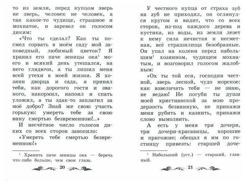 Книги данной серии - экономкласса. Можно рекомендовать детям, уже увлечённым чтением, для которых наличие картинок не является главным в книге. Да, картинок нет, зато есть сноски с объяснением непонятных, устаревших слов (очень понравилось, что сноски даны в нижней части страницы, а не в конце книги). Шрифт крупный. Текст приводится полный, без сокращений, не адаптированный для более юных читателей, что позволяет погрузиться в описываемое автором время, словно самому побывать в волшебном дворце у чудища. В общем, для начальной школы вполне подойдёт.