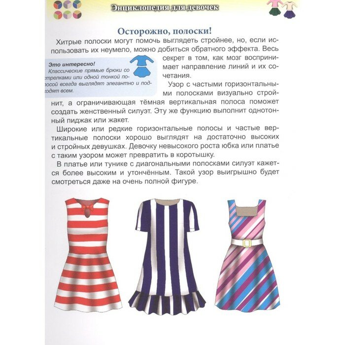 «В нашей энциклопедии мы собрали много интересной информации, которая пригодится любой девочке. Советы о том, как лучше ухаживать за кожей и волосами и подбирать одежду, помогут заложить основы ухода за собой, без которых не обойтись в более старшем возрасте. Здесь вы найдёте и простые рецепты, которые можно освоить самостоятельно. Очень удобно, когда все самые нужные и полезные сведения собраны в одном месте! Мы не забыли и о важных для современных детей рекомендациях, как правильно себя вести в сложных и опасных ситуациях, как распознать угрозу своей жизни при общении в социальных сетях.