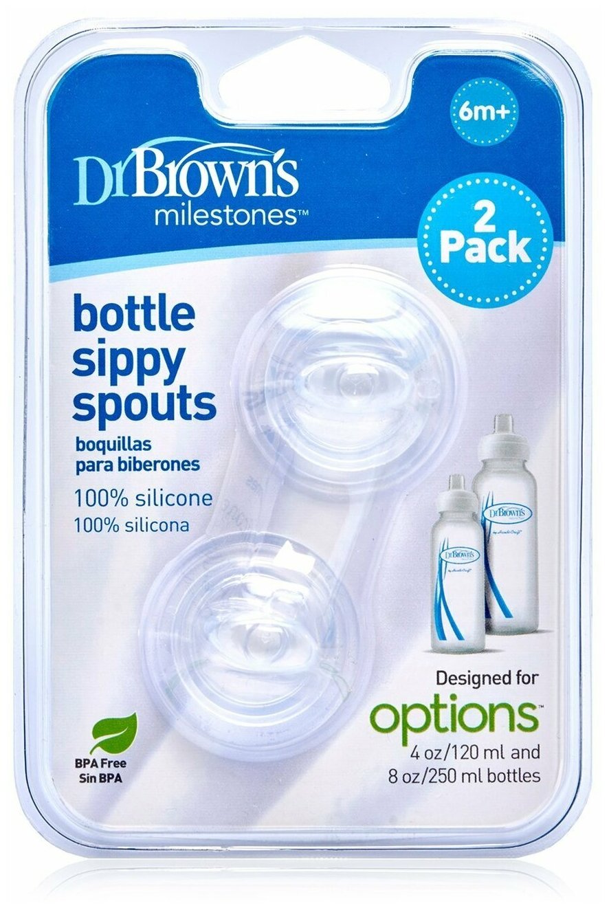 Соски-носики Dr.Brown's для бутылочек с узким горлышком позволят облегчить для ребенка процесс обучения самостоятельному питью. С их помощью можно легко и быстро превратить привычную малышу бутылочку в поильник. Соски-носики изготовлены из мягкого и практичного силикона, не травмируют нежные десна и зубки и легко очищаются (можно мыть на верхней полке посудомоечной машины). Предназначены для использования с бутылочками серии Options and Options Wide-Neck.