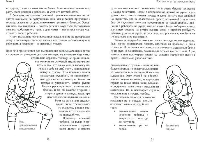 Я очень рада, что появляется всё больше литературы по естественной гигиене. Книга довольно полно освещает вопрос, автор приводит убедительные доводы в пользу высаживания, объясняет, чем Высаживание не является и опровергает устоявшиеся мифы и стереотипы о нём. Да, высаживание - это не про сидение на горшке или раннее к нему приучение. Практическая часть книги полезна, приведены основные позы, способы "уберечь" дом. Про голопопство пригодилась информация. С первым ребенком не практиковала постоянно его, туда-сюда штанишки, утомляет. Второй дома без штанов постоянно - сколько лишних телодвижений отпали за ненадобностью. И да, с одноразовыми подгузниками всё гораздо проще, но понимание, сколько выгод отказ от них даёт моим детям (и не забываем про экологию!), даёт силы и мотивацию продолжать этот труд. Самое главное - казалось бы, туалетная тема! - но это действительно сближает с ребёнком, учит маму чувствовать своего ребёнка, укрепляет связь Мать и Дитя.