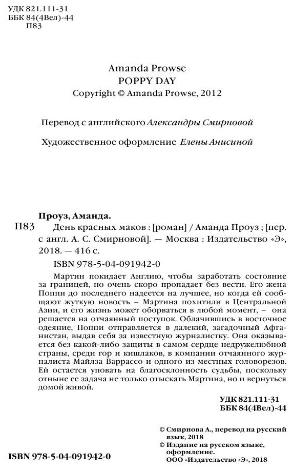 Книга: День красных маков (Аманда Проуз); Эксмо, Редакция 1, 2018