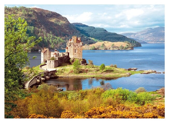 Пазл "Замок в заливе" состоит из 2000 деталей. Он подходит тем, кто уже умело собирает картинки попроще и хочет испытать себя! Собранный пазл выглядит очень живописно, поэтому усилия того стоят: на нем изображен замок Эйлен-Донан в Шотландии, знаменитый не только своим романтичным видом, но и интересной историей.