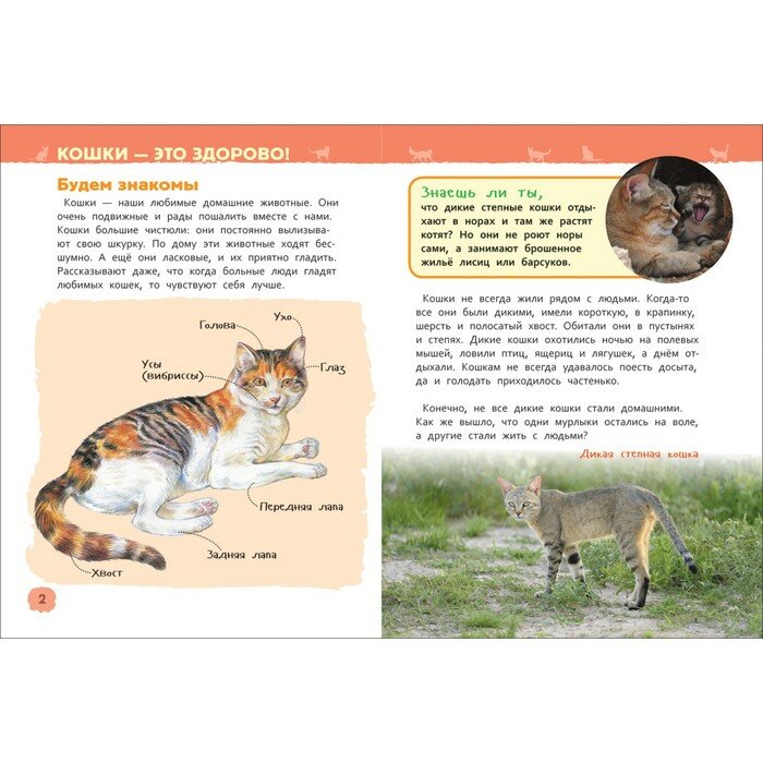 Энциклопедия небольшая, но достаточно содержательная. Тут и про породы кошек, про их природу, и про уход в домашних условиях.. Достаточно познавательная, чтобы ребёнок понял, что кошка в доме - это не просто развлечение, а ещё и большая ответственность.