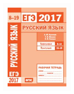 Рабочая тетрадь по русскому языку серии «ЕГЭ 2017. Русский язык» ориентирована на подготовку учащихся старшей школы к успешной сдаче Единого государственного экзамена по русскому языку в 2017 году. Пособие включает тренинги, соответствующие экзаменационным заданиям 8—14 (орфография) и заданиям 15—19 (пунктуация). Авторы книги являются разработчиками контрольных измерительных материалов по русскому языку для основной и средней школы. Пособие адресовано учащимся одиннадцатых классов, школьным учителям и репетиторам. Издание соответствует Федеральному государственному общеобразовательному стандарту (ФГОС).