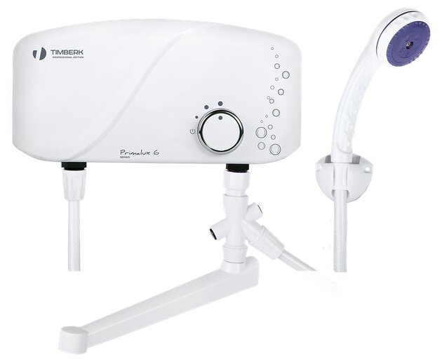 Проточный водонагреватель Timberk – скромный помощник, который ежедневно будет снабжать всю семью горячей водой. Благодаря мощности в 5.5 к Вт прибор производит до 4 литров горячей воды ежеминутно, обеспечивая бытовые и гигиенические потребности всей семьи. Максимальная температура воды при этом может достигать 85°, однако этот показатель можно уменьшить по желанию владельца до комфортных ему показателей. Корпус устройства выполнен из белого пластика.