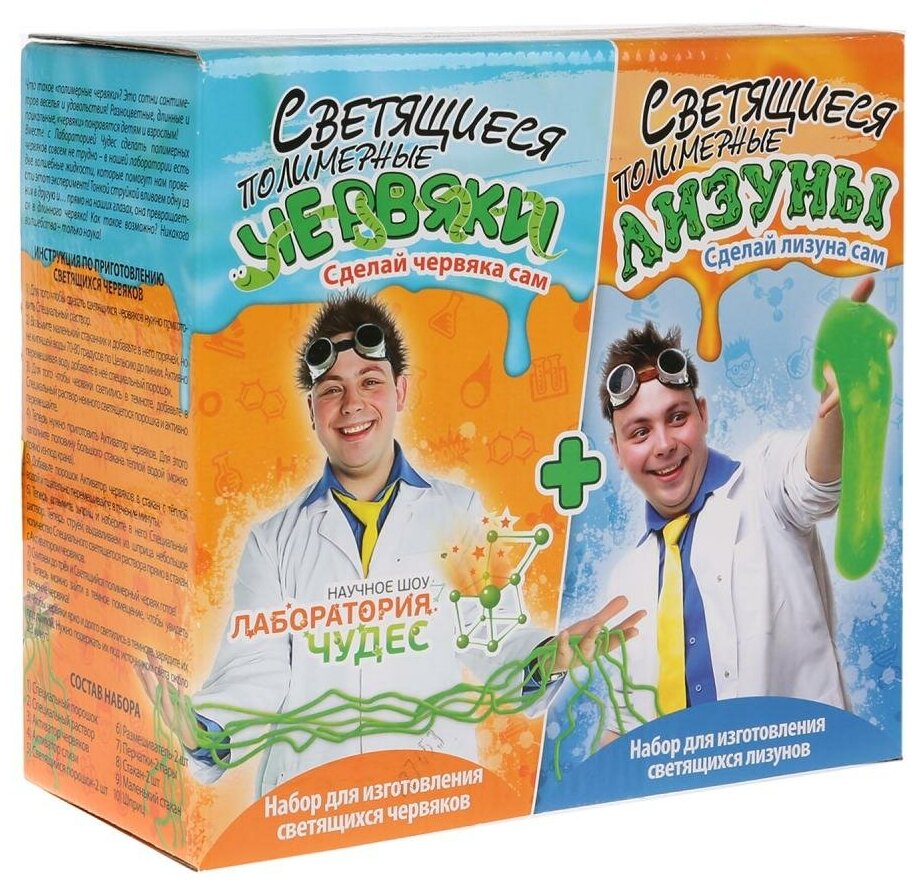 Набор Инновации для детей Светящиеся лизуны и червяки (2 в 1) Юный химик (828)