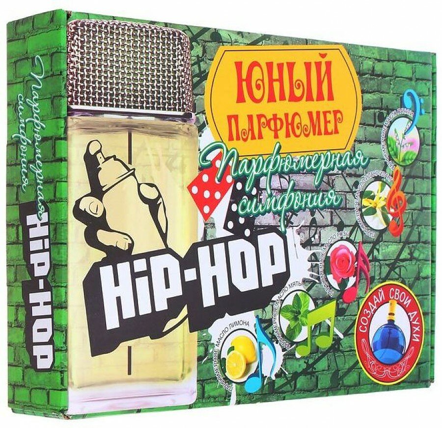 Набор Парфюмерная симфония предназначен для создания собственного аромата с использованием парфюмерных масел 5-ти растений: мяты , лимона, розы, иланг-иланга и пачули. Смешивая масла между собой, ребенок сможет получить множество комбинаций и выбрать тот аромат, который придется ему по вкусу. В наборе можно найти все необходимое для создания собственного парфюма: основу для духов, пипетки, пробирки, флаконы. Полученный аромат будет схож с мелодией в стиле Хип-хоп, его можно также послушать и получить множество приятных эмоций. Набор для создания духов Хип-хоп станет прекрасным подарком для юного парфюмера!