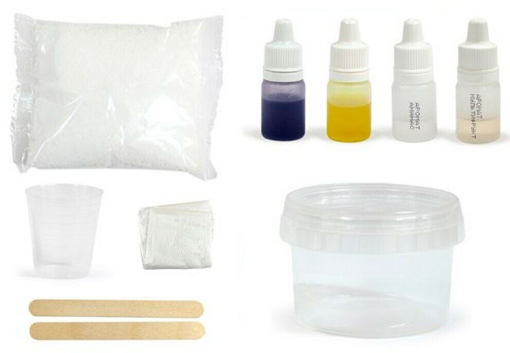 | Состав набора | емкость для смешивания - 1 шт; палочки; перчатки - 1 шт; краситель - 2 шт; ароматизатор - 2 шт; основа для жемчужинок - 1 шт; мерный стакан - 1 шт |