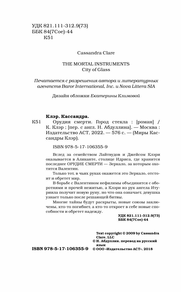Орудия смерти. Город стекла (Кассандра Клэр); АСТ, 2025