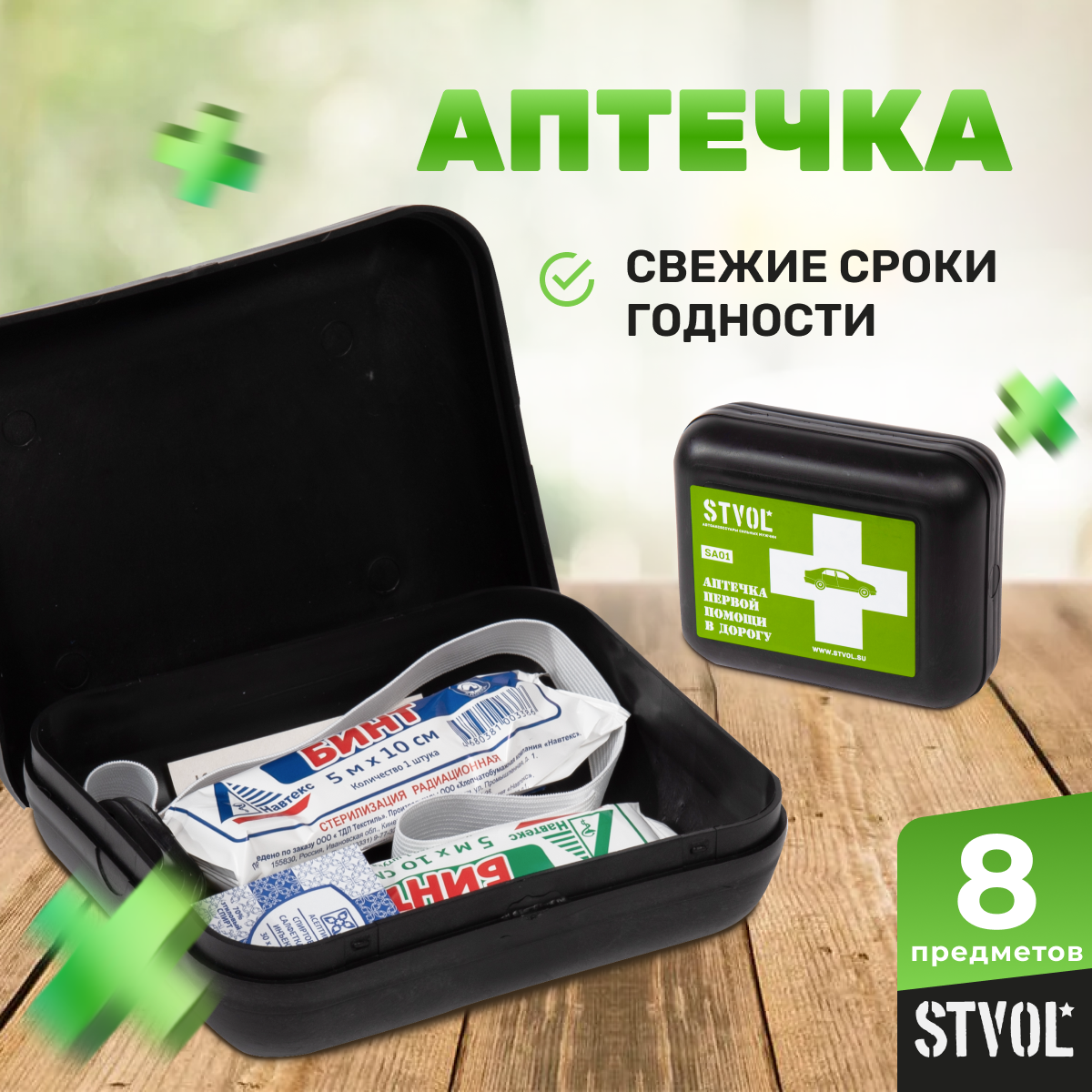 Аксессуары Stvol Аптечка первой помощи Stvol поставляется в удобном пластиковом футляре с ручкой, который выполнен в черном цвете. Она предназначена для оказания медицинской помощи в дорожных условиях, а также на отдыхе, в походе или поездке.