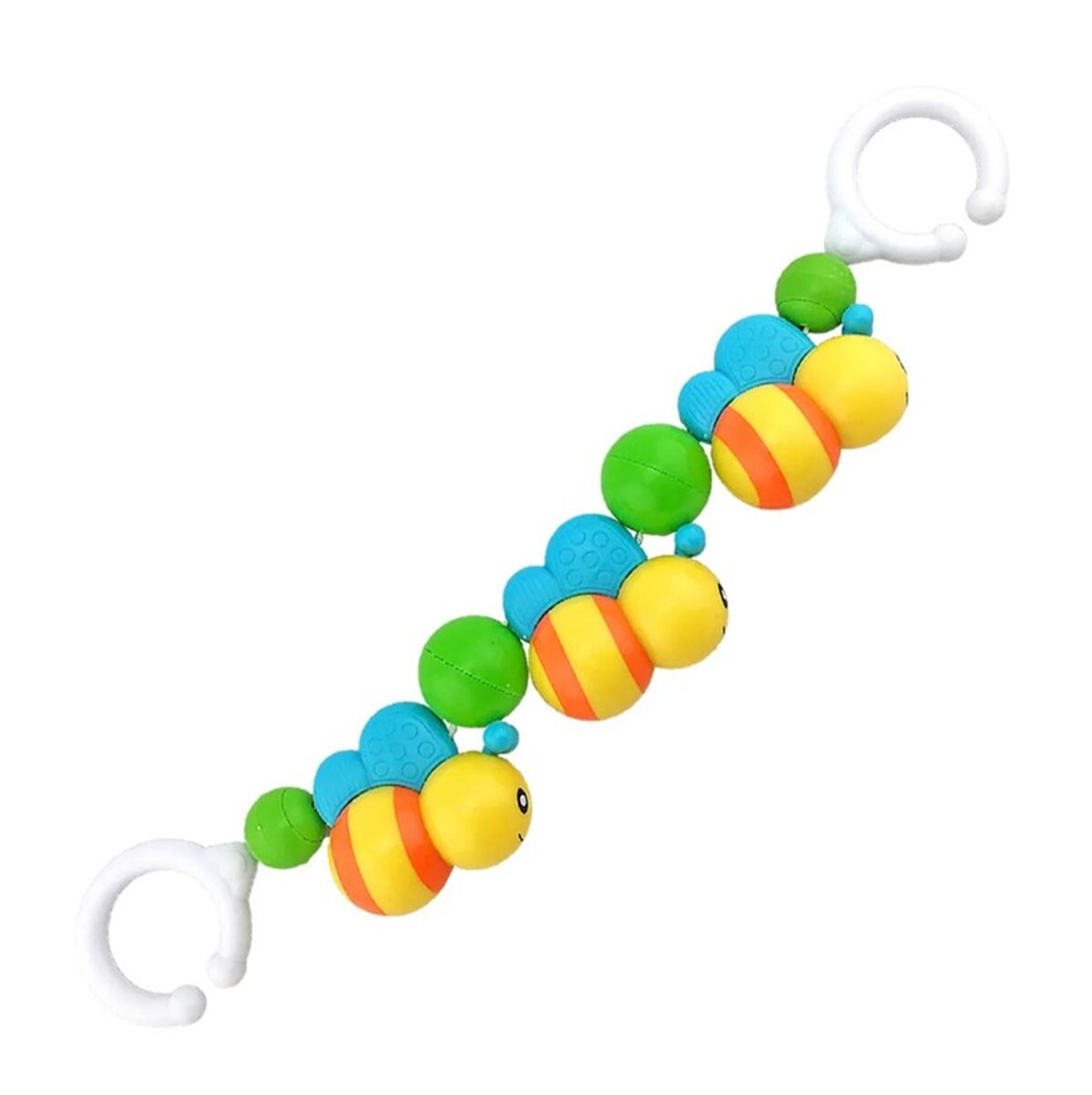 Эту подвеску можно закрепить на детской кроватке или на коляске с помощью специальных колечек. Если покачать подвеску, она будет весело греметь. Сначала малыш научится фокусировать взгляд на разноцветных игрушках, а потом начнет тянуться к подвеске ручками и ножками. Такое изделие послужит крохе хорошим тренажером для развития тактильных ощущений, слухового и зрительного восприятия, а также внимания и способности различать цвета. Подвеска состоит из ярких шариков и фигурок забавных пчелок.