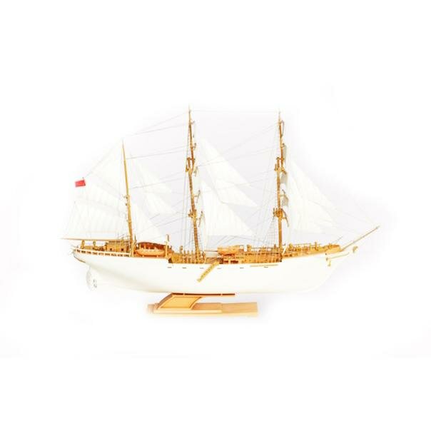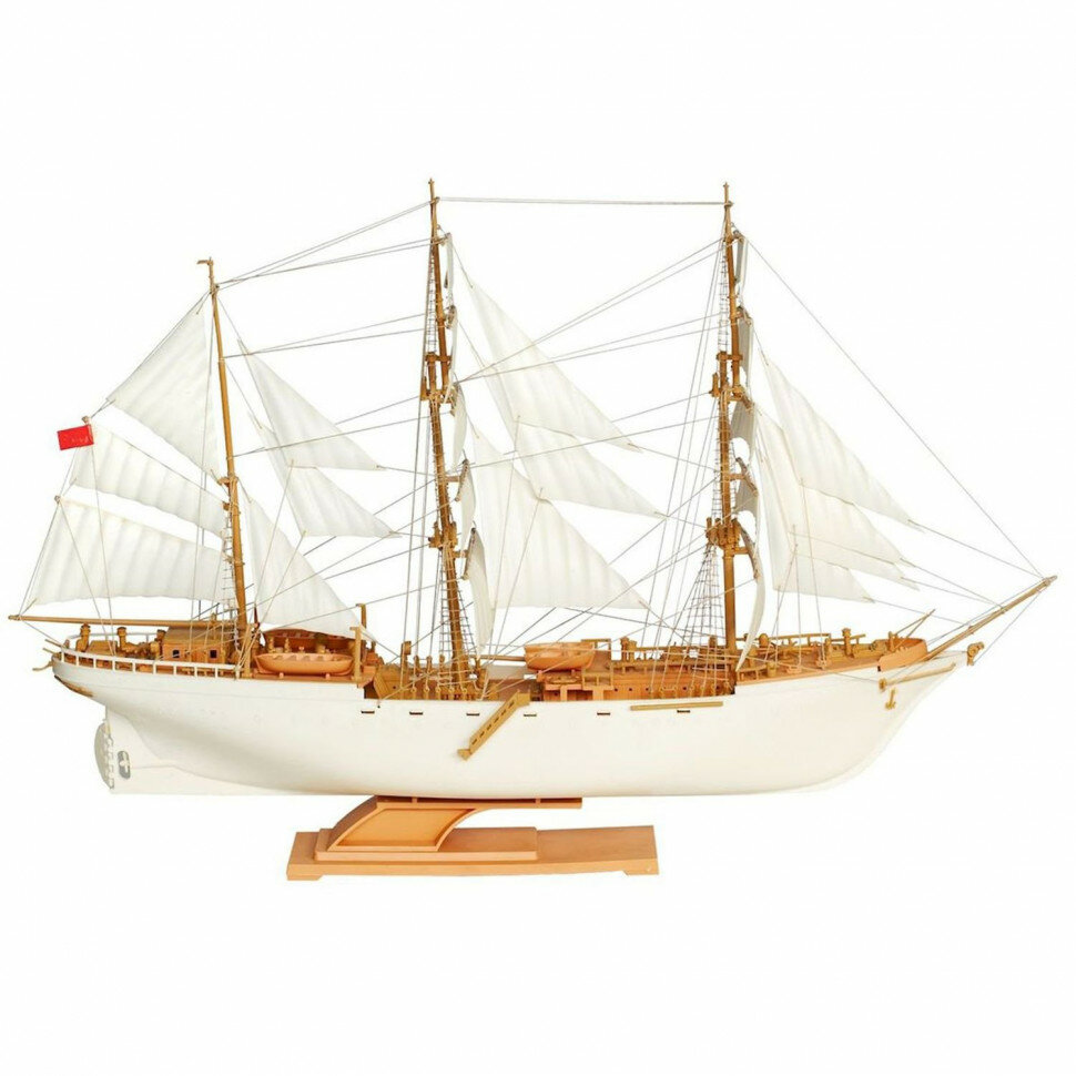 Собранная модель представляет собой уменьшенную копию самого крупного учебного корабля советского флота вплоть до Второй мировой войны - барка Товарищ. Судно предназначалось для коммерческой торговли с Индией, отсюда большой размер и 4 мачты с парусами, чтобы вести больше груза и преодолевать большие расстояния. Модель имеет детально проработанную палубу, с запасными шлюпками на борту, 4 мачты с парусами и стропами, крепящимися к ним, и подставку.