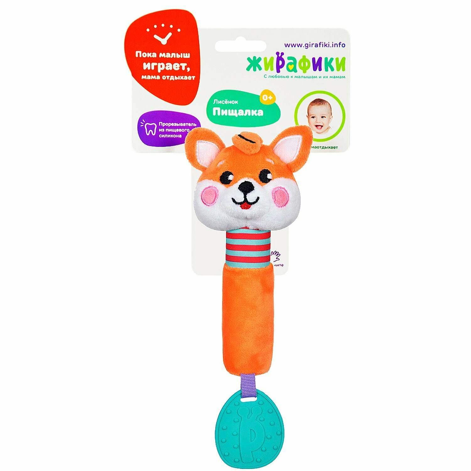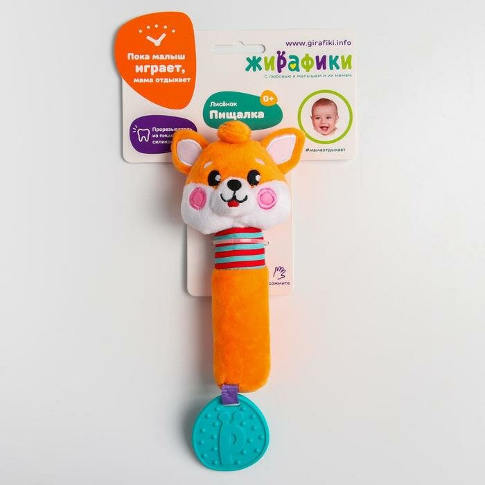 Сервис сравнения цен СкидкаГИД предлагает сравнить цены на товар «Пищалка с прорезывателем Жирафики силиконовым Лисенок 20 см (939515)»