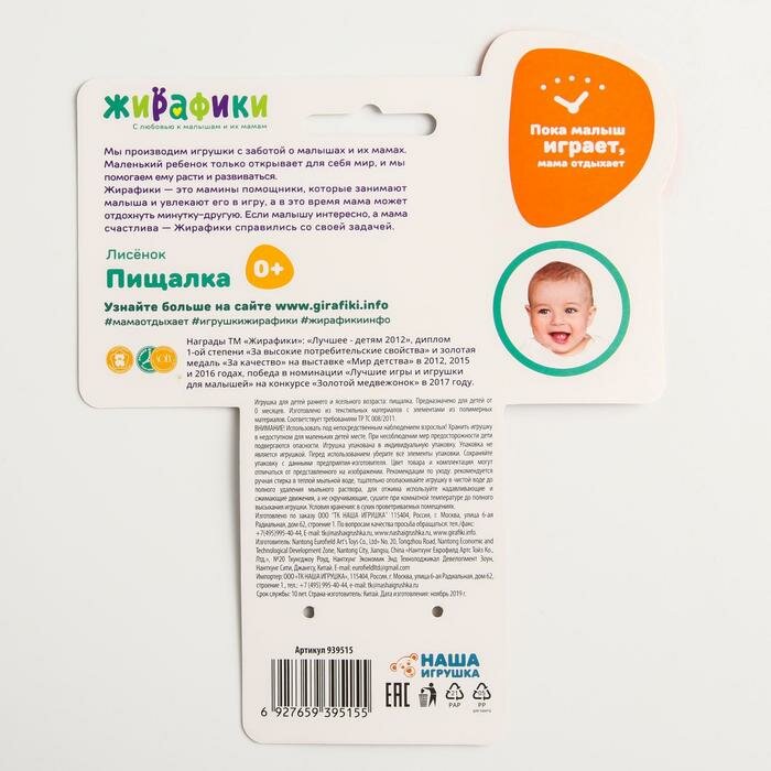 На сегодняшний день товар «Пищалка с прорезывателем Жирафики силиконовым Лисенок 20 см (939515)» можно купить с кешбеком в 1 магазине: Яндекс.Маркет