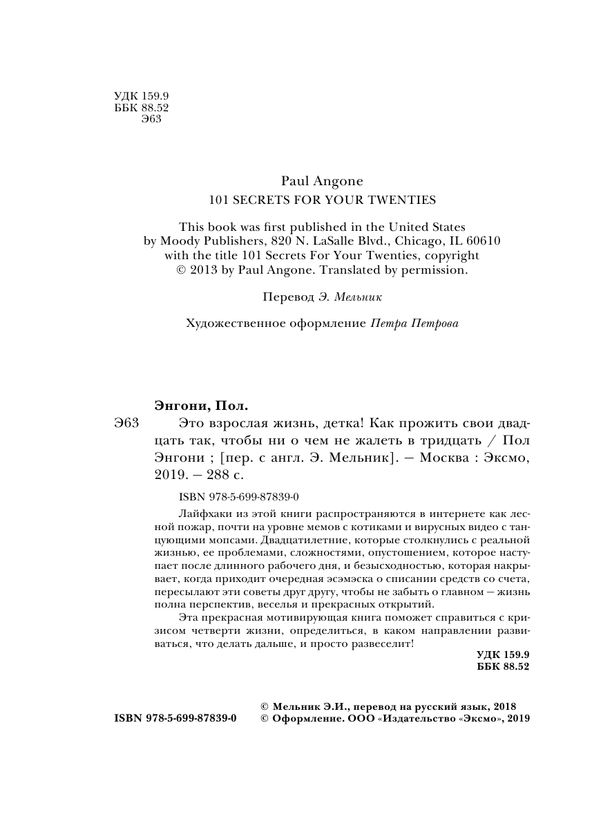 Это взрослая жизнь детка! Как прожить свои двадцать так чтобы ни о чем не жалеть в тридцать (Энгони Пол); ООО "Издательство "Эксмо", 2020