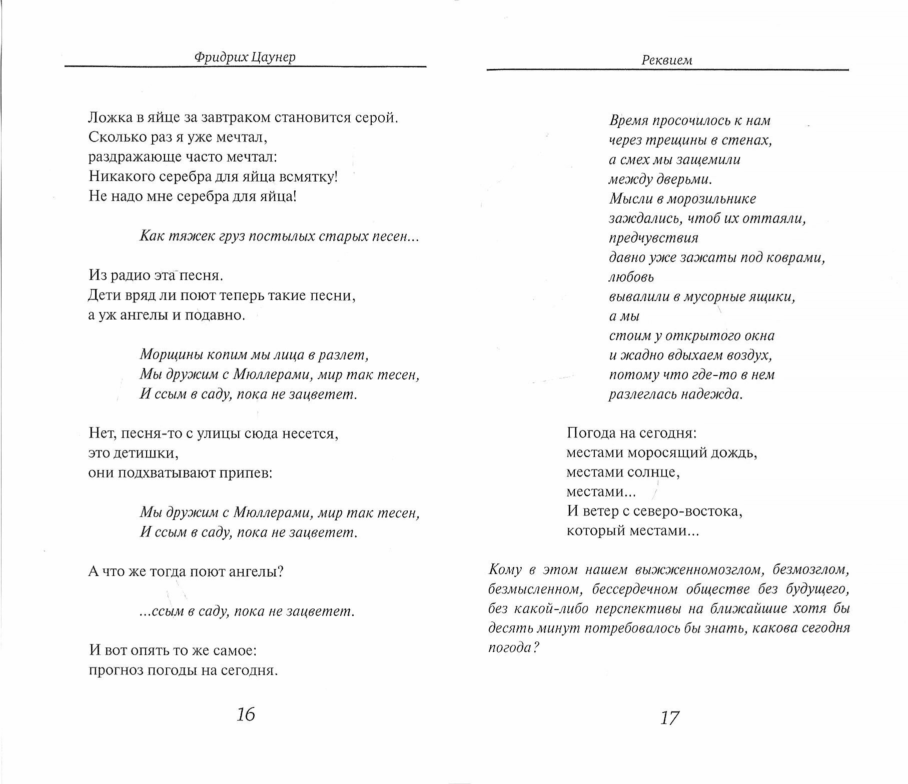 Поэма "Реквием", в которой стихотворная виртуозность Цаунера соединилась с адекватным выражением его мировоззрения и самоощущения в сегодняшнем мире, является шедевром австрийской лирики XXI века.