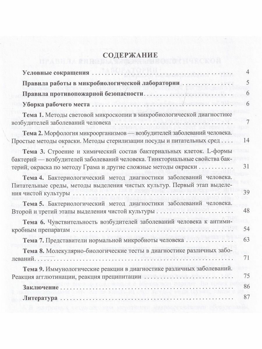 В учебном пособии представлены основные правила работы в микробиологической лаборатории и данные, необходимые для проведения практических занятий по курсу "Микробиология, вирусология и иммунология". В пособии показана важная роль световой микроскопии в микробиологической диагностике возбудителей заболеваний человека, при этом подчеркнута значимость правильного использования методов исследования морфологии и физиологии микроорганизмов, перечислено разнообразие приемов окраски бактерий, питательных сред и методов стерилизации посуды. Подробно изложены бактериологические методы диагностики заболеваний человека, начиная с взятия клинического материала для исследования, выбора питательных сред, особенностей культивирования различных возбудителей заболеваний и выделения чистых культур бактерий. Представленные в пособии данные по строению и химическому составу бактериальных клеток лежат в основе определения чувствительности возбудителей заболеваний человека к антимикробным препаратам, а также обоснованного подбора и назначения антимикробных препаратов. Детально показана решающая роль представителей нормальной микробиоты человека в регуляции множества физиологических функций организма. Дана оценка использования современных методов и молекулярно-биологических тестов в диагностике различных заболеваний человека.