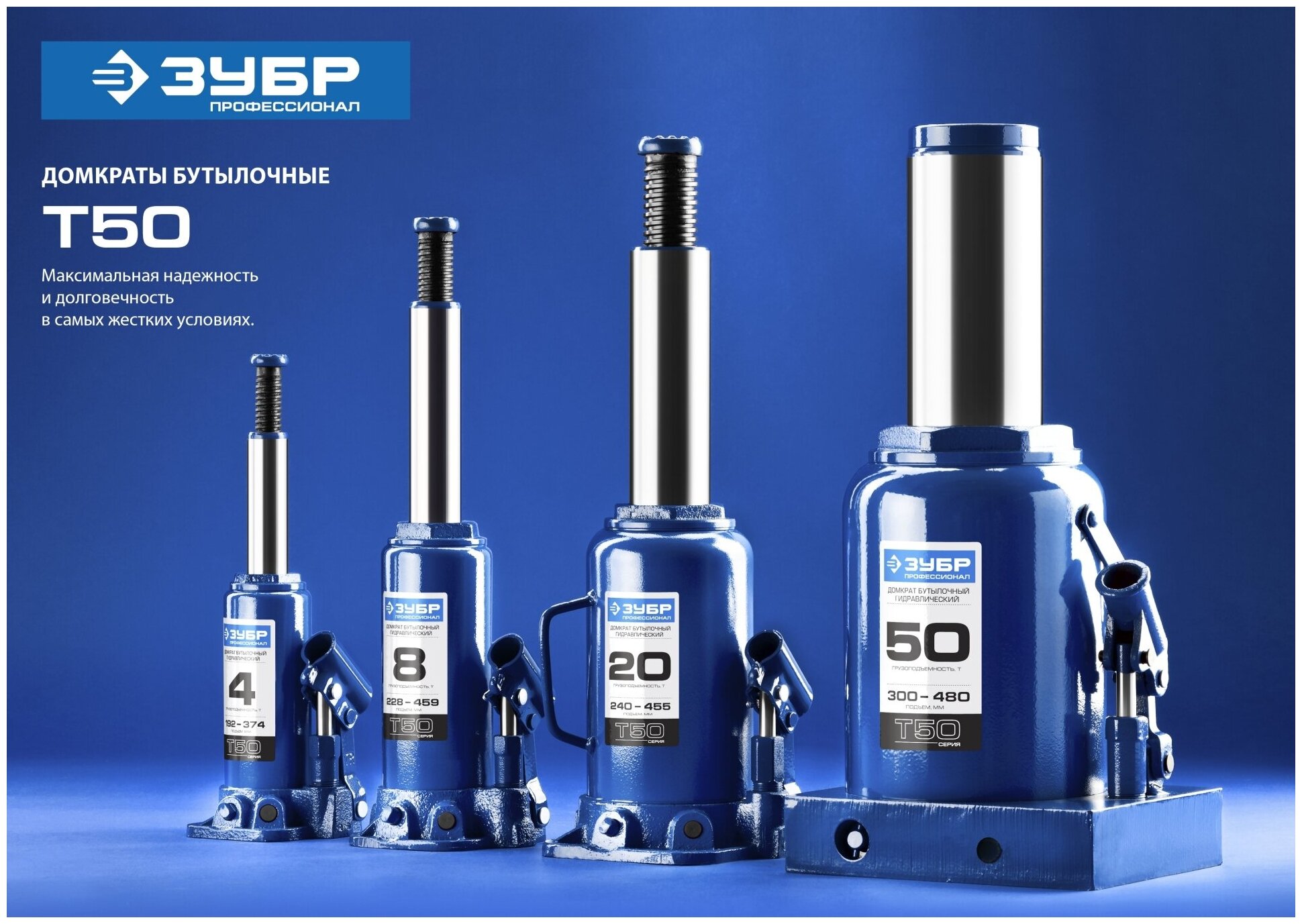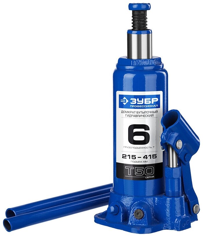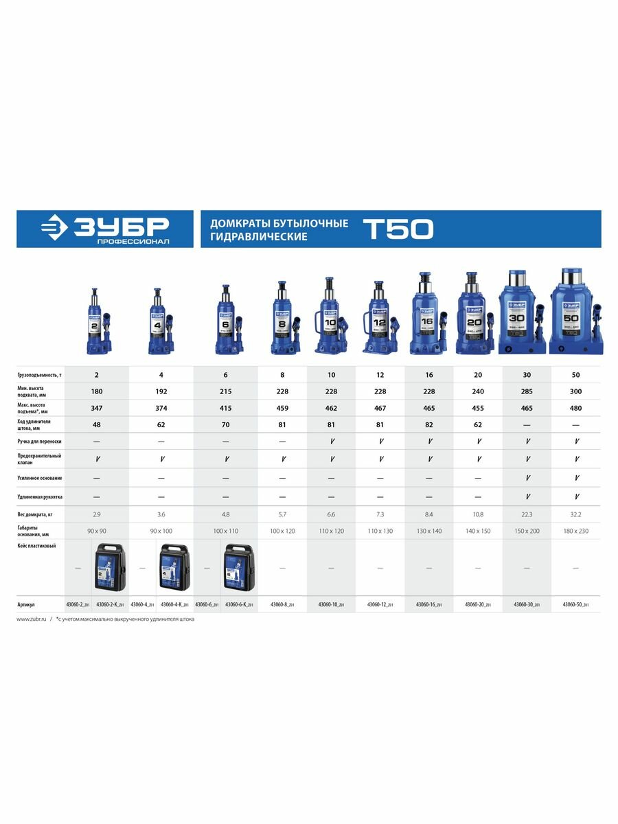Домкрат Зубр Профессионал 43060-6-K бутылочный гидравлический в кейсе 6т 215-415мм