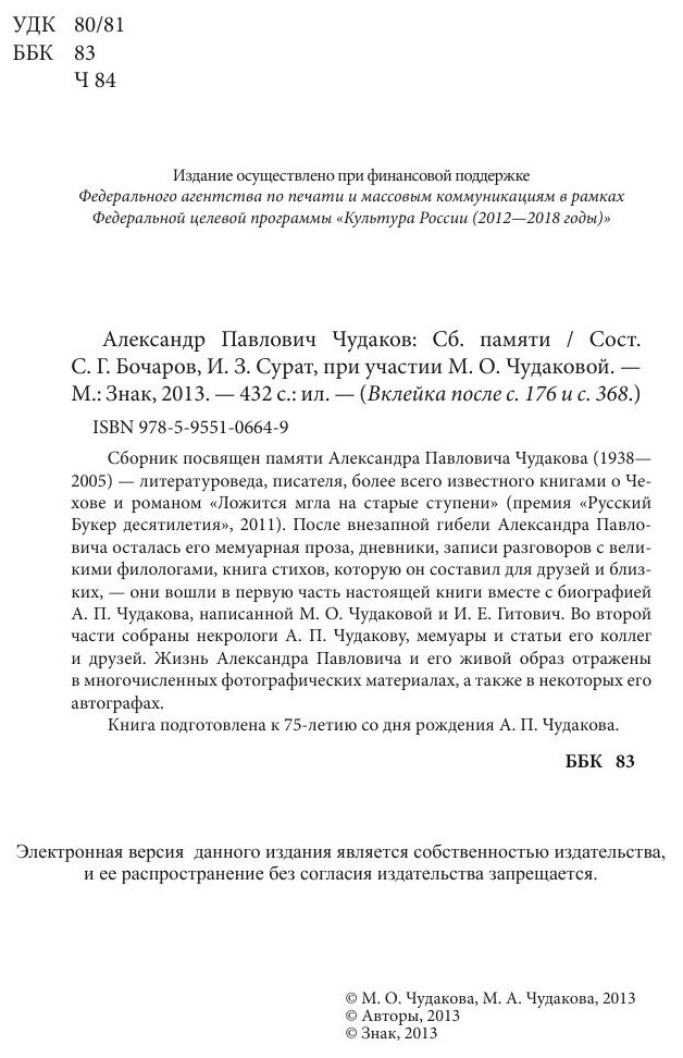 Книга подготовлена к 75-летию со дня рождения А. П. Чудакова.