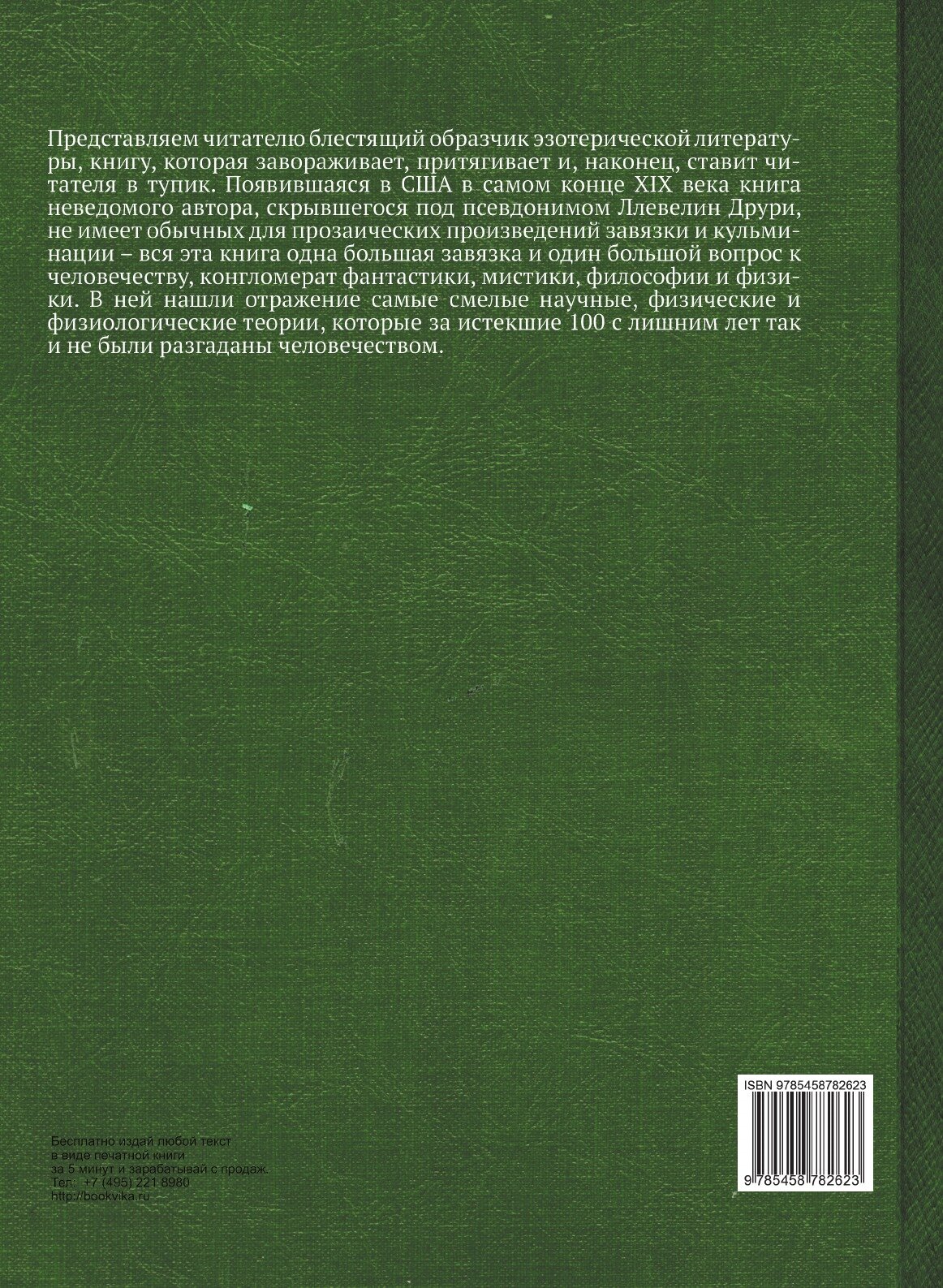 Представляем читателю блестящий образчик эзотерической литературы, книгу, которая завораживает, притягивает и, наконец, ставит читателя в тупик. Появившаяся в США в самом конце XIX века книга неведомого автора, скрывшегося под псевдонимом Ллевелин Друри, не имеет обычных для прозаических произведений завязки и кульминации – вся эта книга одна большая завязка и один большой вопрос к человечеству, конгломерат фантастики, мистики, философии и физики. В ней нашли отражение самые смелые научные, физические и физиологические теории, которые за истекшие 100 с лишним лет так и не были разгаданы человечеством.