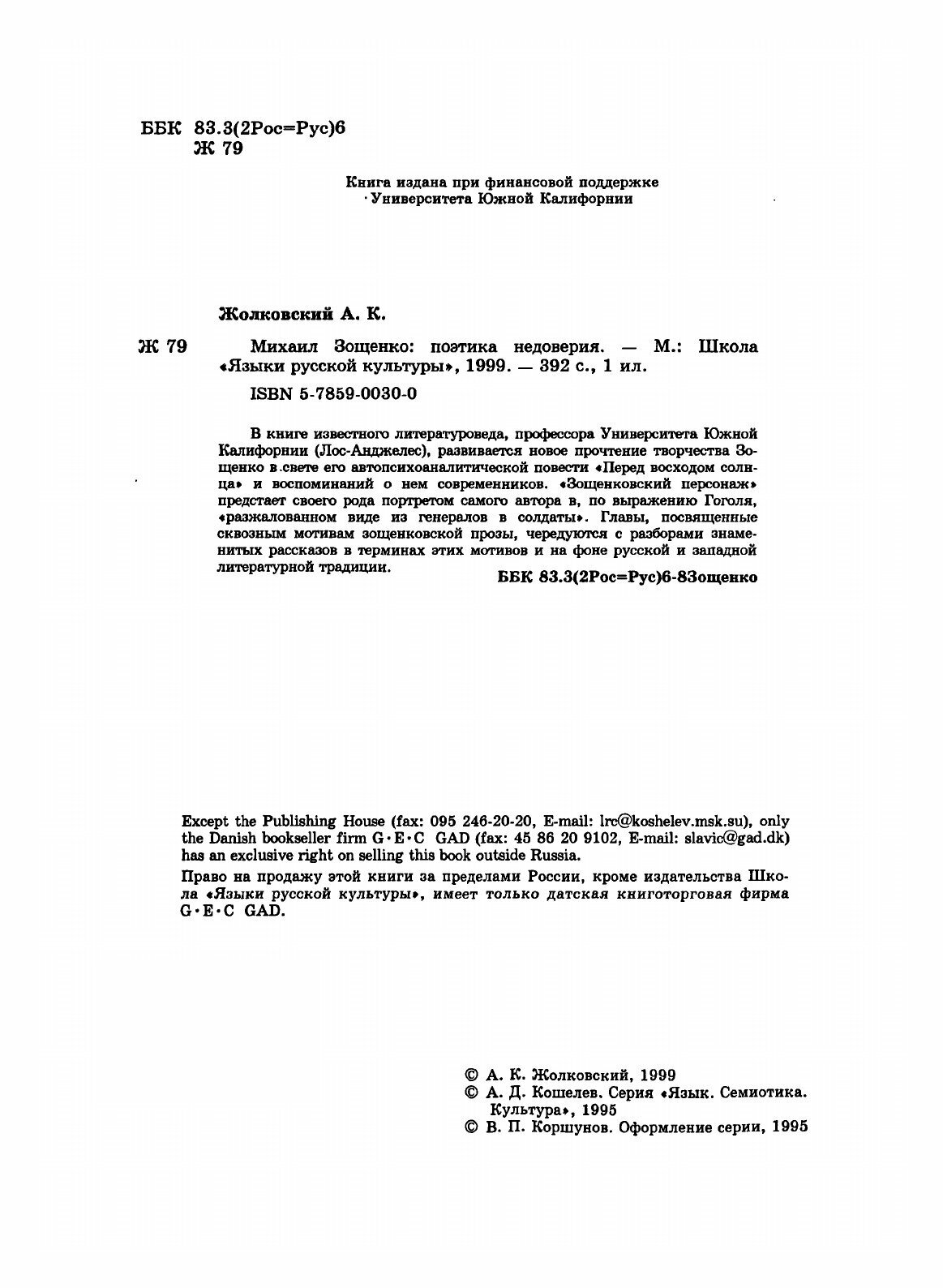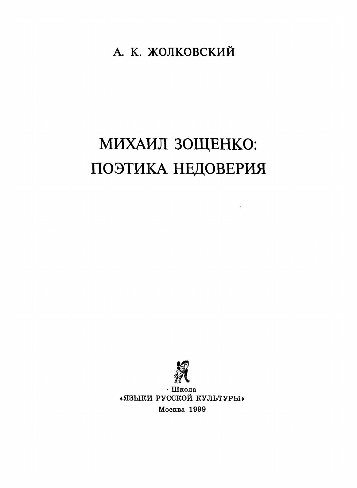 Михаил Зощенко: поэтика недоверия (Жолковский Александр Константинович), 2011