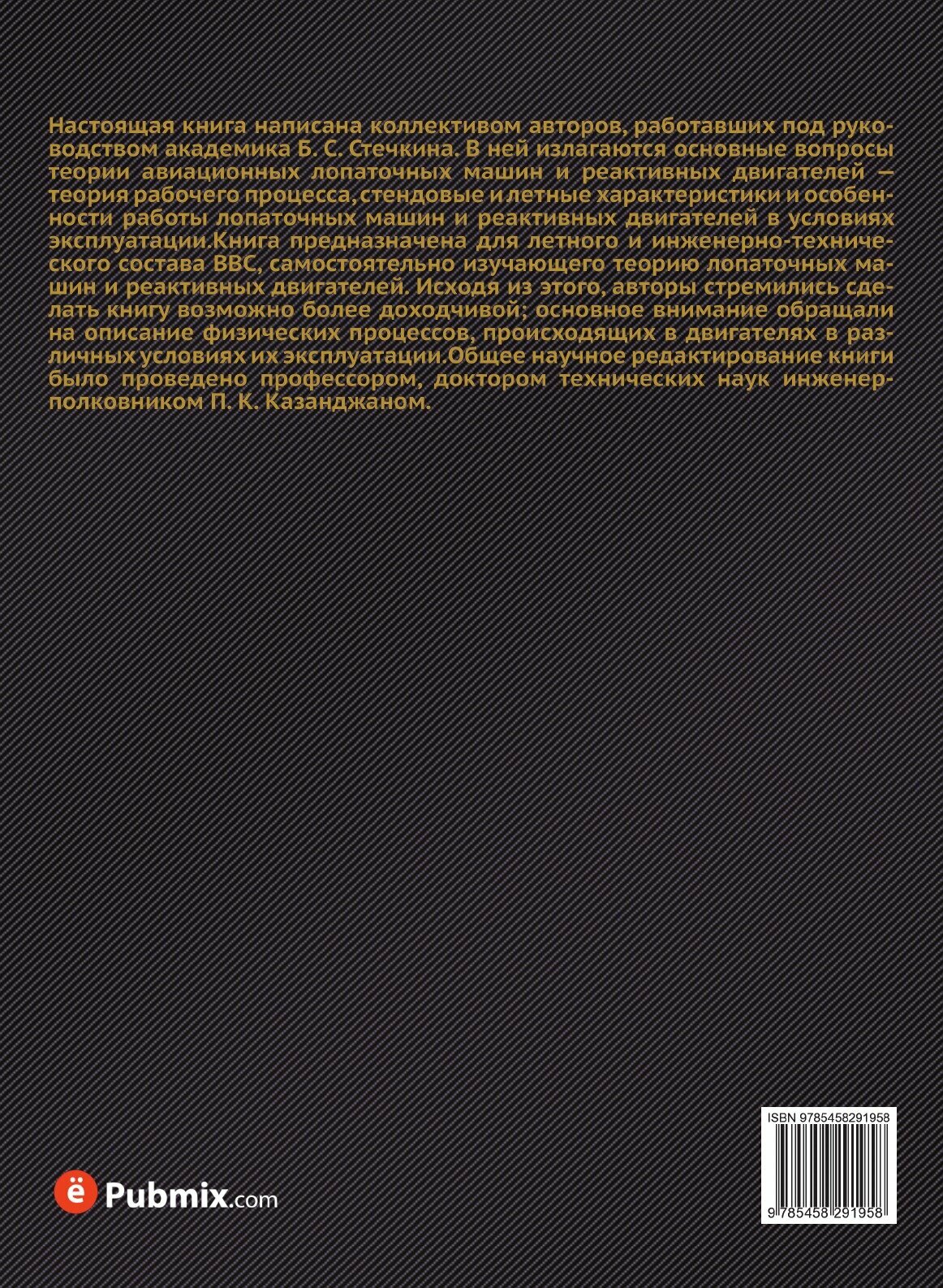 Настоящая книга написана коллективом авторов, работавших под руководством академика Б. С. Стечкина. В ней излагаются основные вопросы теории авиационных лопаточных машин и реактивных двигателей — теория рабочего процесса, стендовые и летные характеристики и особенности работы лопаточных машин и реактивных двигателей в условиях эксплуатации.Книга предназначена для летного и инженерно-технического состава ВВС, самостоятельно изучающего теорию лопаточных машин и реактивных двигателей. Исходя из этого, авторы стремились сделать книгу возможно более доходчивой; основное внимание обращали на описание физических процессов, происходящих в двигателях в различных условиях их эксплуатации.Общее научное редактирование книги было проведено профессором, доктором технических наук инженер-полковником П. К. Казанджаном.