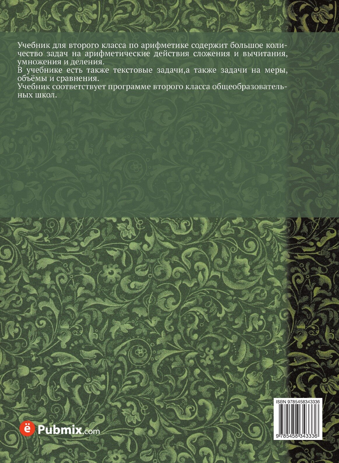Учебник для второго класса по арифметике содержит большое количество задач на арифметические действия сложения и вычитания, умножения и деления.В учебнике есть также текстовые задачи,а также задачи на меры, объёмы и сравнения.Учебник соответствует программе второго класса общеобразовательных школ.