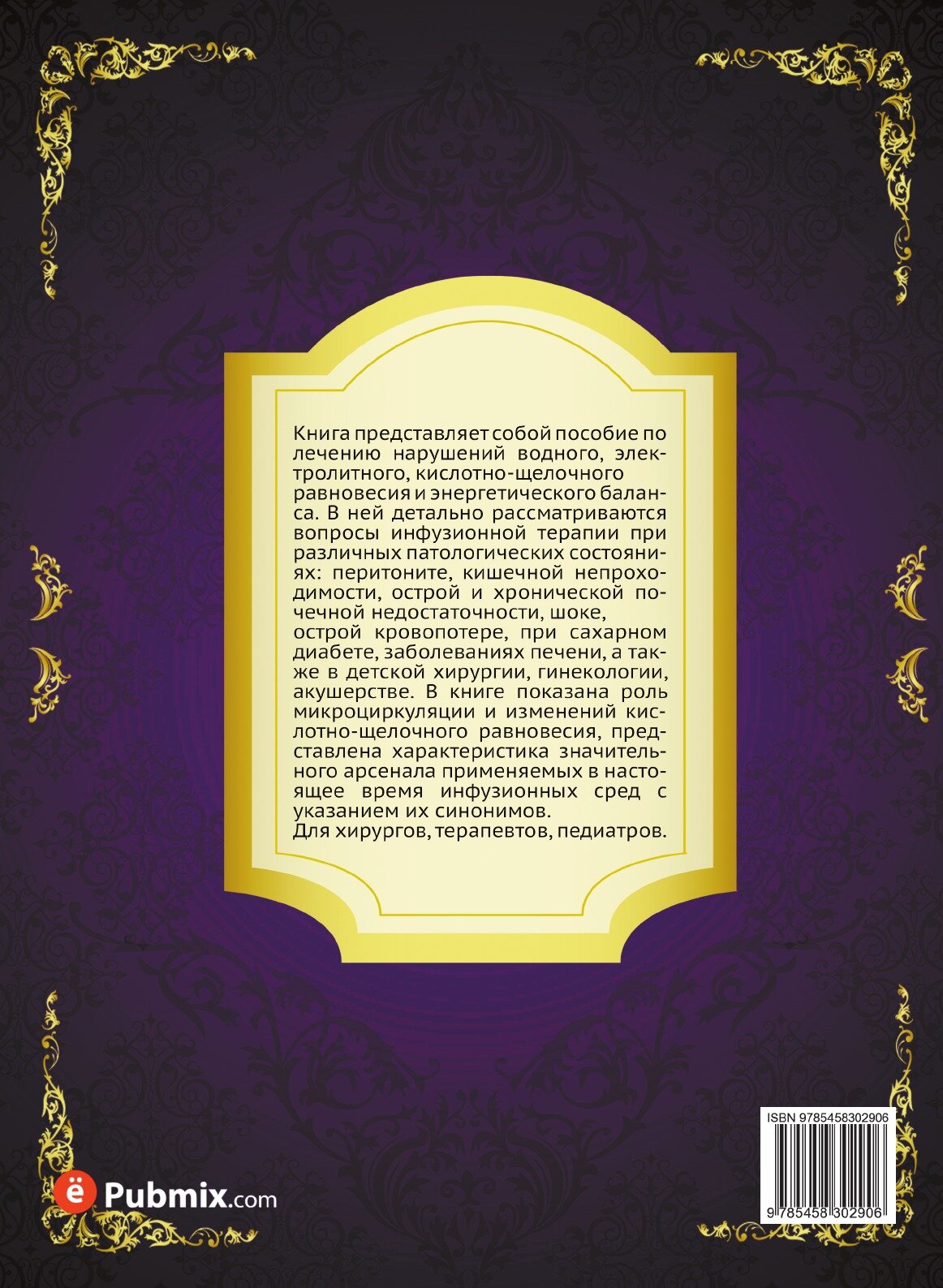 Книга представляет собой пособие по лечению нарушений водного, электролитного, кислотно-щелочного равновесия и энергетического баланса. В ней детально рассматриваются вопросы инфузионной терапии при различных патологических состояниях: перитоните, кишечной непроходимости, острой и хронической почечной недостаточности, шоке, острой кровопотере, при сахарном диабете, заболеваниях печени, а также в детской хирургии, гинекологии, акушерстве. В книге показана роль микроциркуляции и изменений кислотно-щелочного равновесия, представлена характеристика значительного арсенала применяемых в настоящее время инфузионных сред с указанием их синонимов.Для хирургов, терапевтов, педиатров.