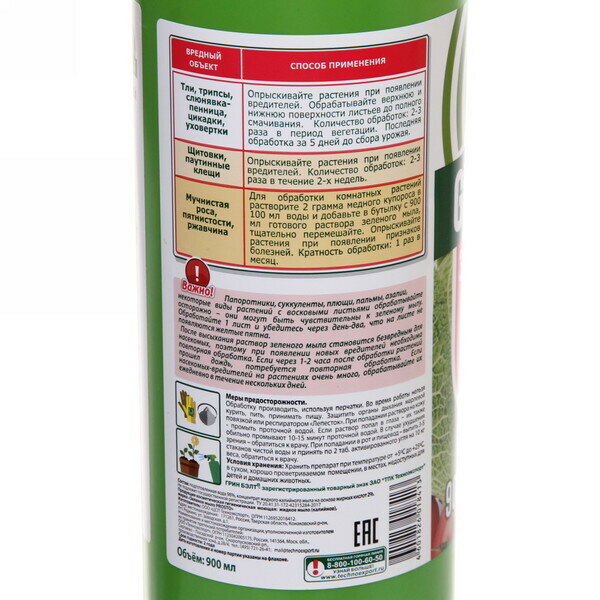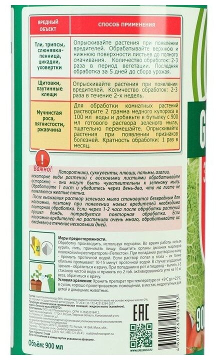 Защита растений от вредителей Грин Бэлт Зеленое мыло, 900 мл 01-686 борется с болезнями растений и насекомыми. Безопасен для людей и животных.