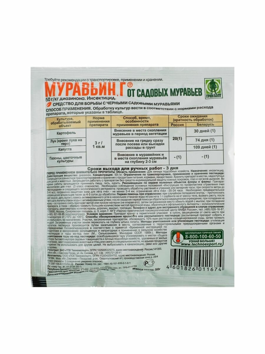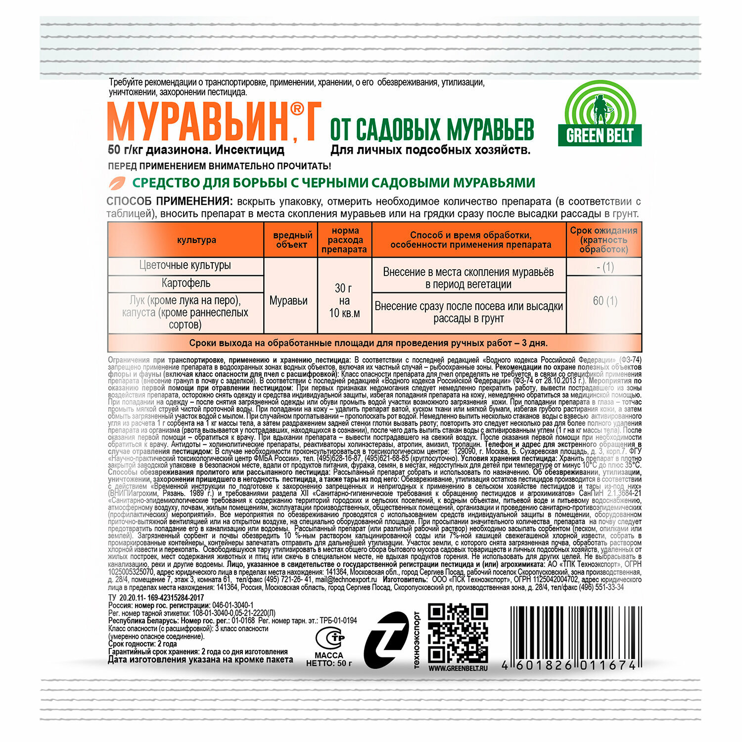 Модель: Средство от почвообитающих вредителей ГРИН БЭЛТ Муравьин пакет 50 г