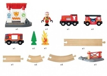 Игровой набор Brio Железная дорога - Пожарная станция со световыми и звуковыми эффектами Пожарная станция свет звук 18 предметов