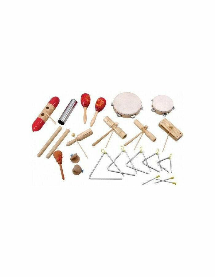 | Состав набора | гуиро с палочкой, кастаньета на ручке, кастаньеты - 1 пара, клавесы - 1 пара, маракасы - 1 пара, тамбурин маленький, тамбурин средний, тон-блок двухтоновый маленький с палочкой, тон-блок двухтоновый средний с палочкой, тон-блок с палочкой, тон-блок-коробочка с палочкой, треугольники с палочками - 5 шт, шейкер |
