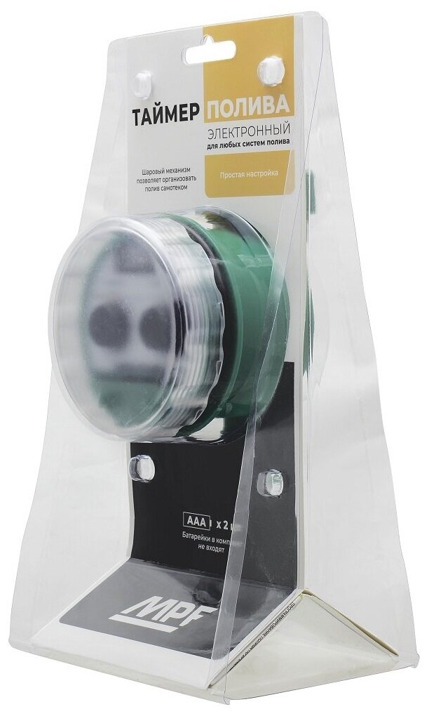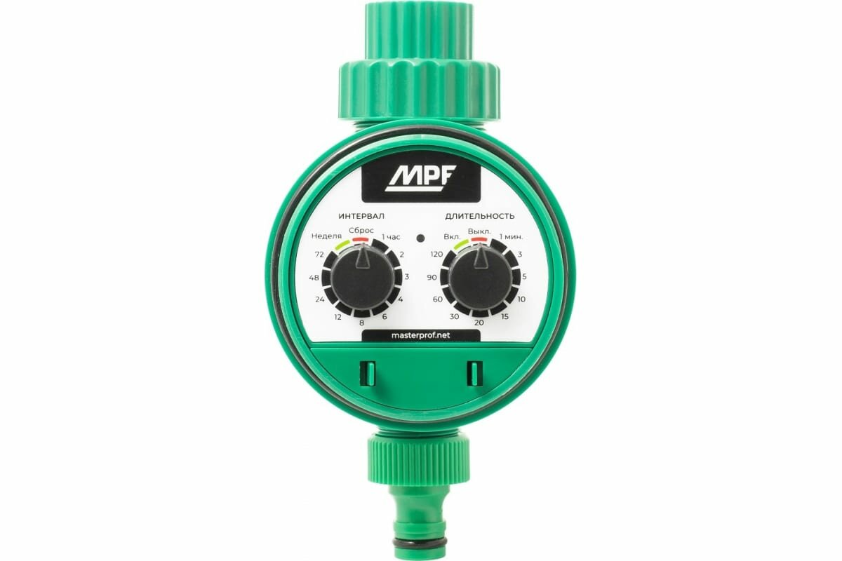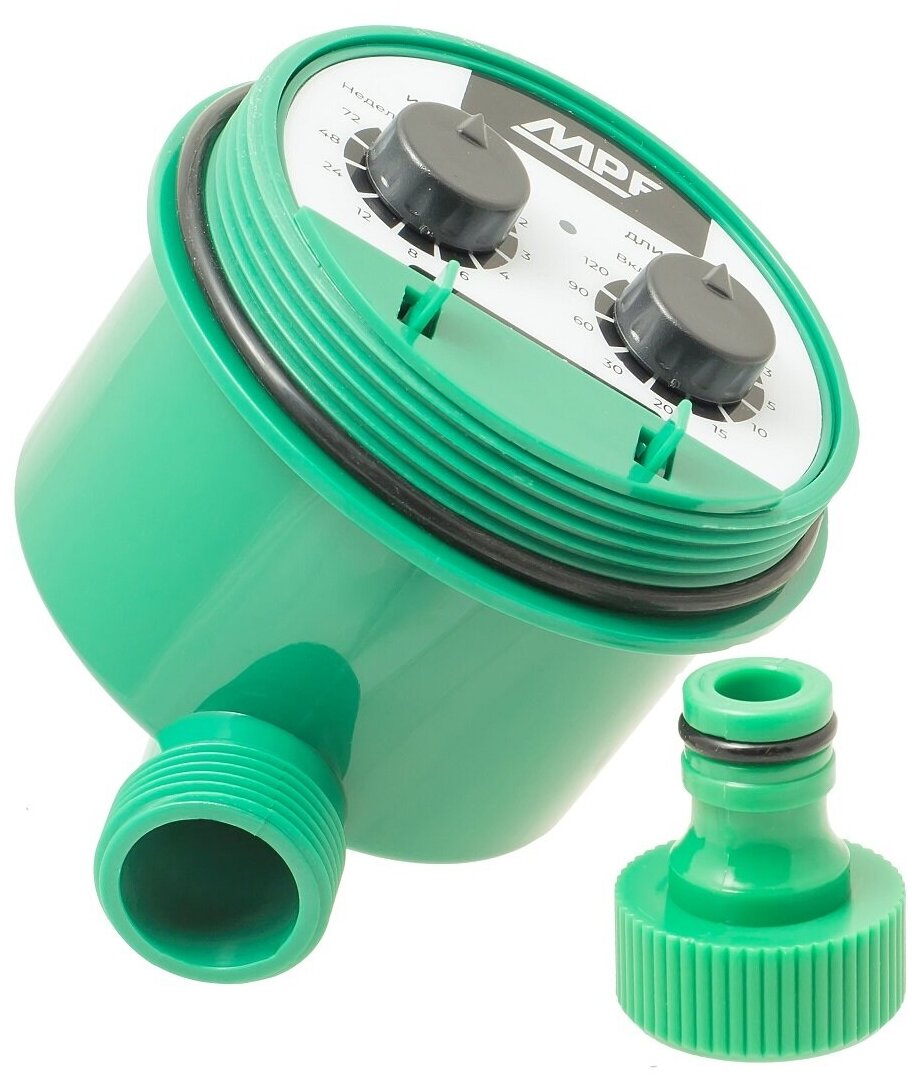 Электронный таймер полива MPF предназначен для автоматической настройки времени полива и его продолжительности. Обеспечивает удобство и комфорт в уходе за садом и огородом. Позволяет регулировать время полива от 1 до 120 минут, частоту полива от 1 часа до 7 суток. Таймер имеет мембранный клапан, регулирующий подачу воды, и работает от водопровода. Источник питания: две батарейки типа ААА.Соединение В/Н. Наружное соединение - штуцер под коннектор, внутреннее - 3/4 резьба. Работает от двух пальчиковых батареек (не входят в комплект). Давление от 0 до 6 атмосфер. Максимальная температура 40 градусов.