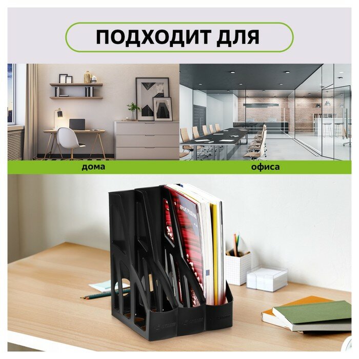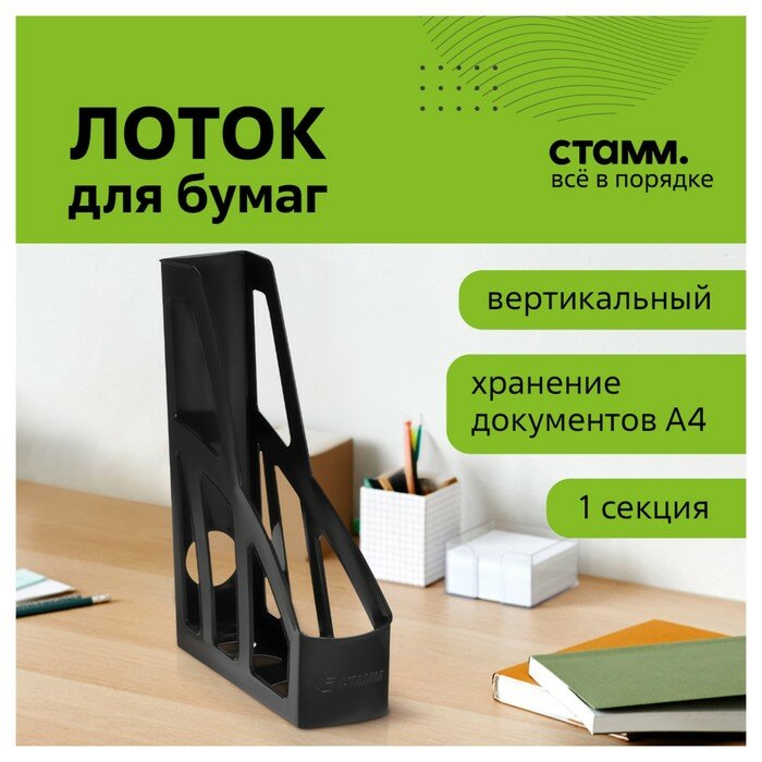 Лоток вертикальный Стамм Лидер черный, 300x250x75мм, пластик