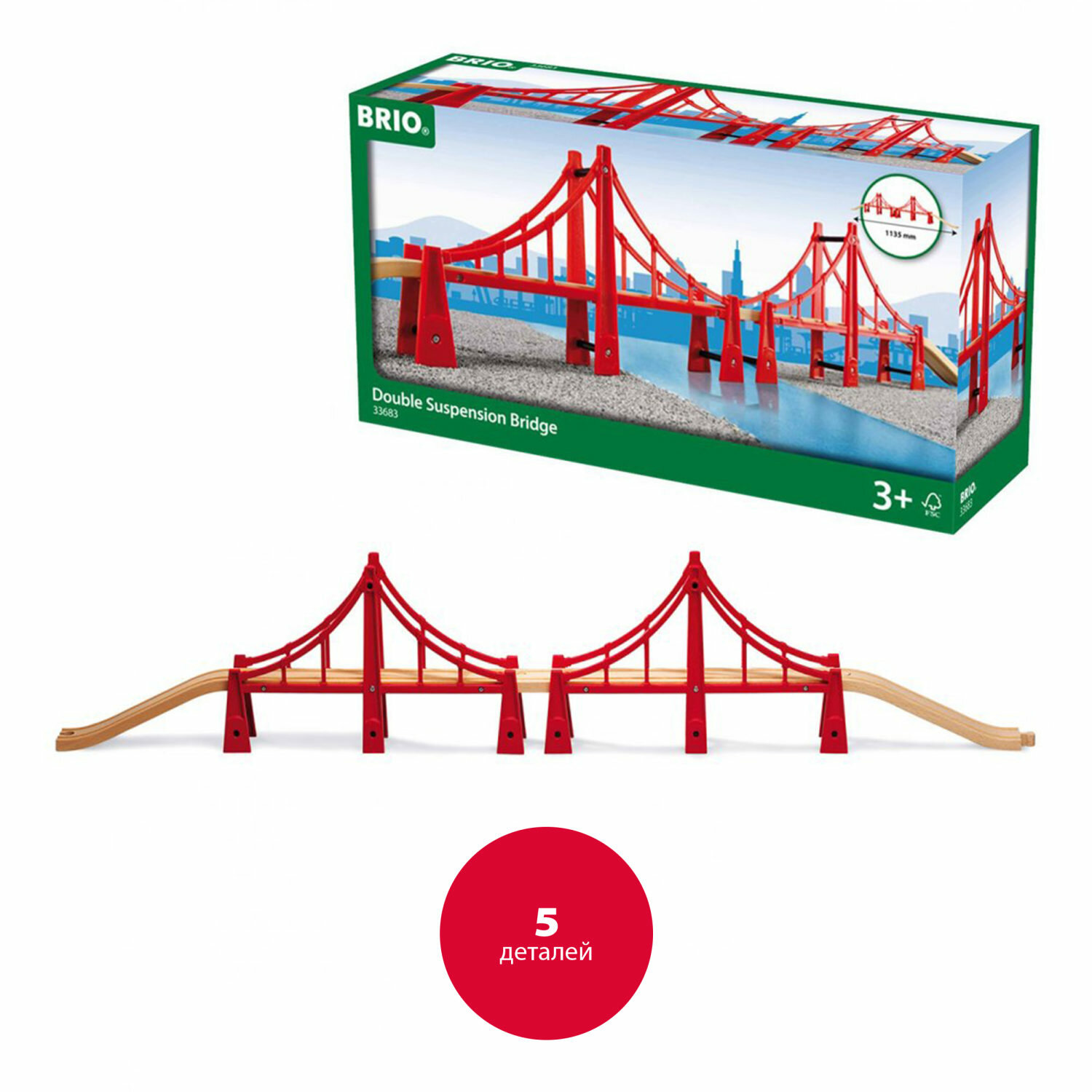 Игровой набор Brio Мост подвесной двойной 5 элементов Деревянный ж/д мост подвесной