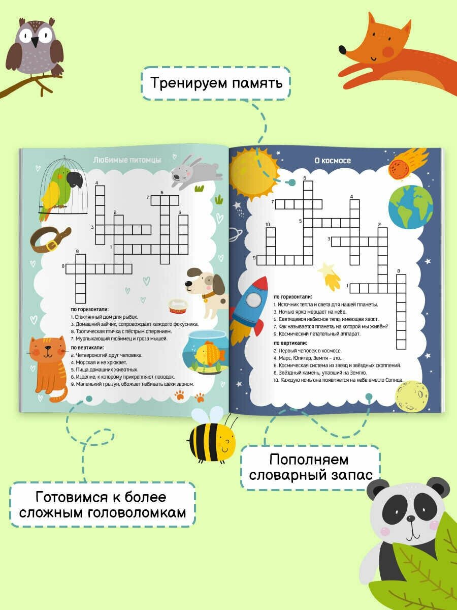 Приобрели всю серию и остались довольны! Будут интересны как маленьким деткам, так и тем, кто постарше. Хороший вариант для отработки чтения и письма, плюс выучить новые слова. Еще очень удобно рассказывать малышу попутно об окружающем мире, темы представлены самые разные. На каждой странице - новая тема. Сынишка притих на весь вечер с кроссвордами, а потом перешел на раскраску с котиками, которая кстати там тоже есть, дана на целый разворот. Сегодня продолжим угадывать слова, а потом начнем филворды)