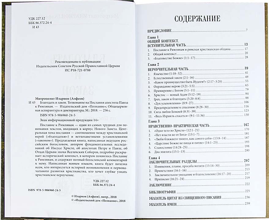 Благодать и закон. Толкование на Послание апостола Павла к римлянам (митрополит Иларион (Алфеев)); Торговый Дом "Познание", 2018