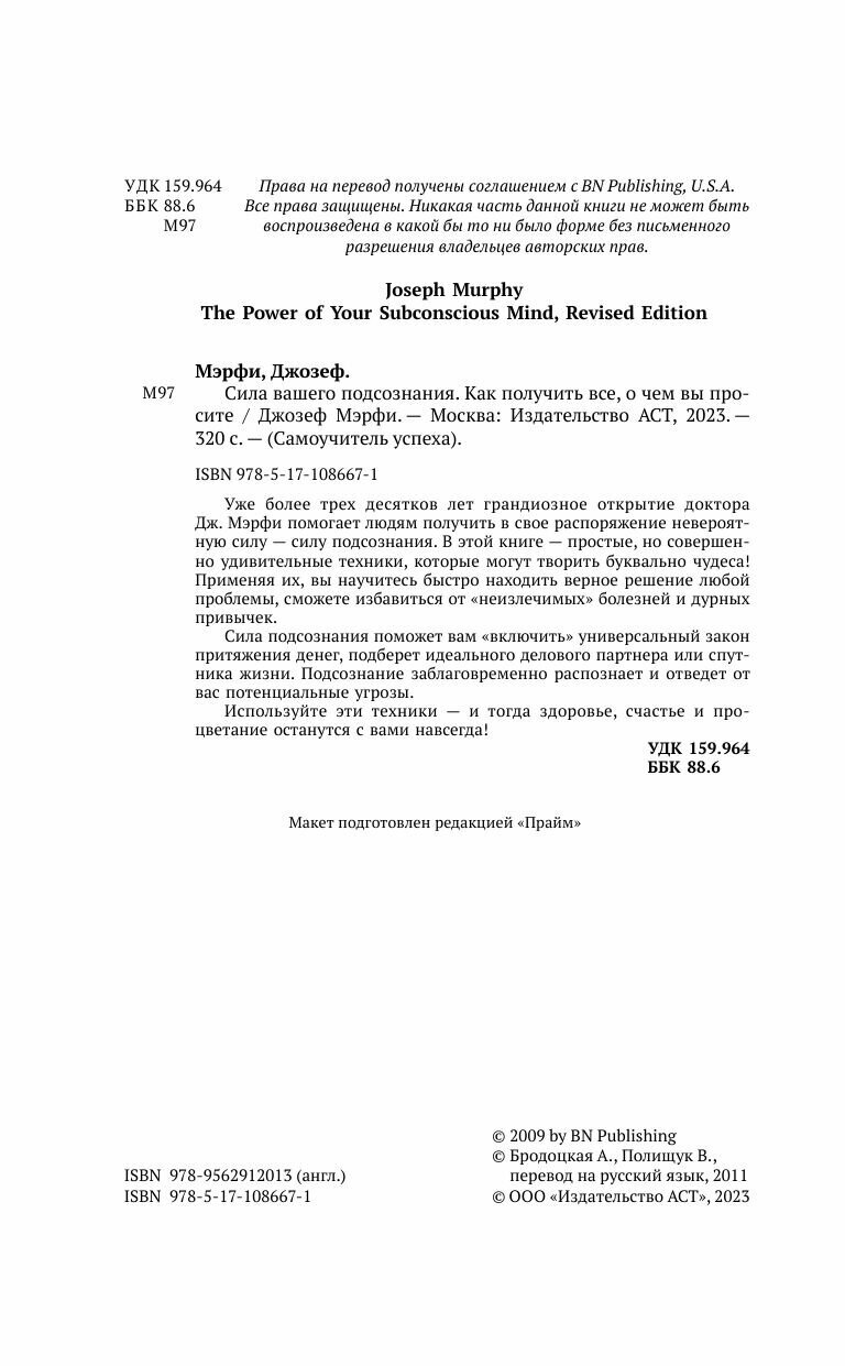 Сила вашего подсознания. Как получить все о чем вы просите (Джозеф Мэрфи); Издательство АСТ, 2009