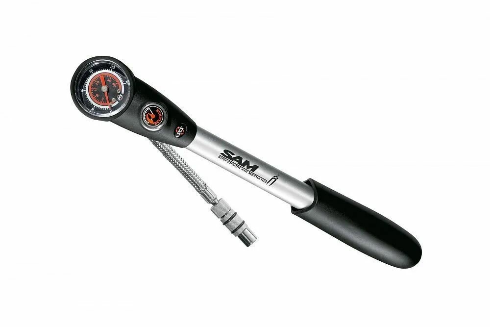 Компактный профессиональный вилочный насос - занимает минимальное место в рюкзаке. Армированный шланг на плавающем шарнире позволяет подобраться к клапану любого, даже самого запрятанного в раму амортизатора. Специальный резьбовой клапан насоса с фиксирующей гайкой имеет функцию установки и съема без потери давления в камере, оснащается кнопкой сброса избыточного давления.