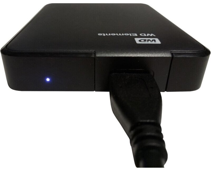 Внешний жёсткий диск WD Elements хорошо подходит для хранения большого объёма информации. На него поместятся не только документы в текстовом формате, но и солидные коллекции фотографий, музыки или фильмов.