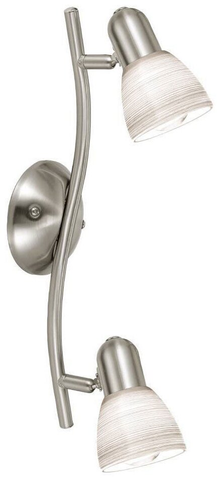 Спот Eglo коллекции Dakar - компактный светильник с двумя лампами, который хорошо подойдет в качестве дополнительной подсветки для просторной комнаты или кухни. Лаконичный дизайн и спокойное цветовое оформление делают спот уместным в комнате, оформленной в современном стиле. Стеклянные плафоны ручной работы декорированы горизонтальными полосами, выполненными в особой технике, что придает светильнику особую индивидуальность и выразительность.