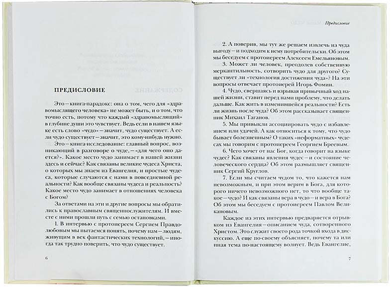 Книга составлена из семи бесед с известными священниками. Центральная тема вынесена в заголовок, и обсуждение этой темы, хотя и содержит всего 130 страниц, получилось захватывающе интересным и многоплановым. Каждой беседе предпослан евангельский отрывок (о чуде, конечно же), мысли же опытных священников об этом многогранном явлении, как и многих других вещах, свежи и незатёрты, список цитируемых собеседников (Блаженный Августин, Клайв Степлз Льюис, митрополит Сурожский Антоний, Владимир Соловьёв, Наталья Трауберг, Мартин Бубер) изысканный. Суть книги - не в рассказывании чудесных случаев из жизни ("а вот у меня был случай"), а в попытке понять, какое место занимает чудо во взаимоотношениях Бога и человека. Как сказано в предисловии - это книга-исследование. На мой взгляд, опыт такого исследования удался.