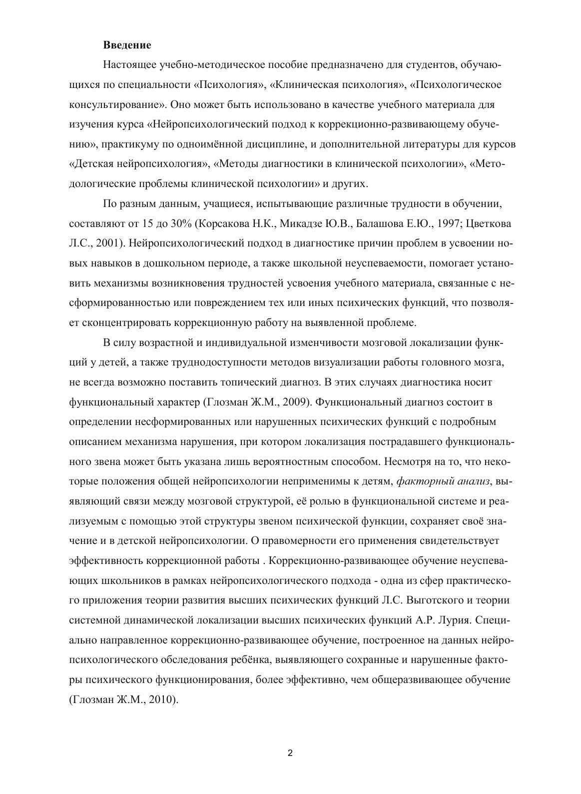 Методы нейропсихологической диагностики, описанные в пособии, содержат как традиционные пробы, предложенные основоположником отечественной нейропсихологии А.Р. Лурия, так и их современные модификации, которые позволяют проводить анализ несформированности или нарушения высших психических функций у младших дошкольников и детей, имеющих значительное снижение интеллекта.